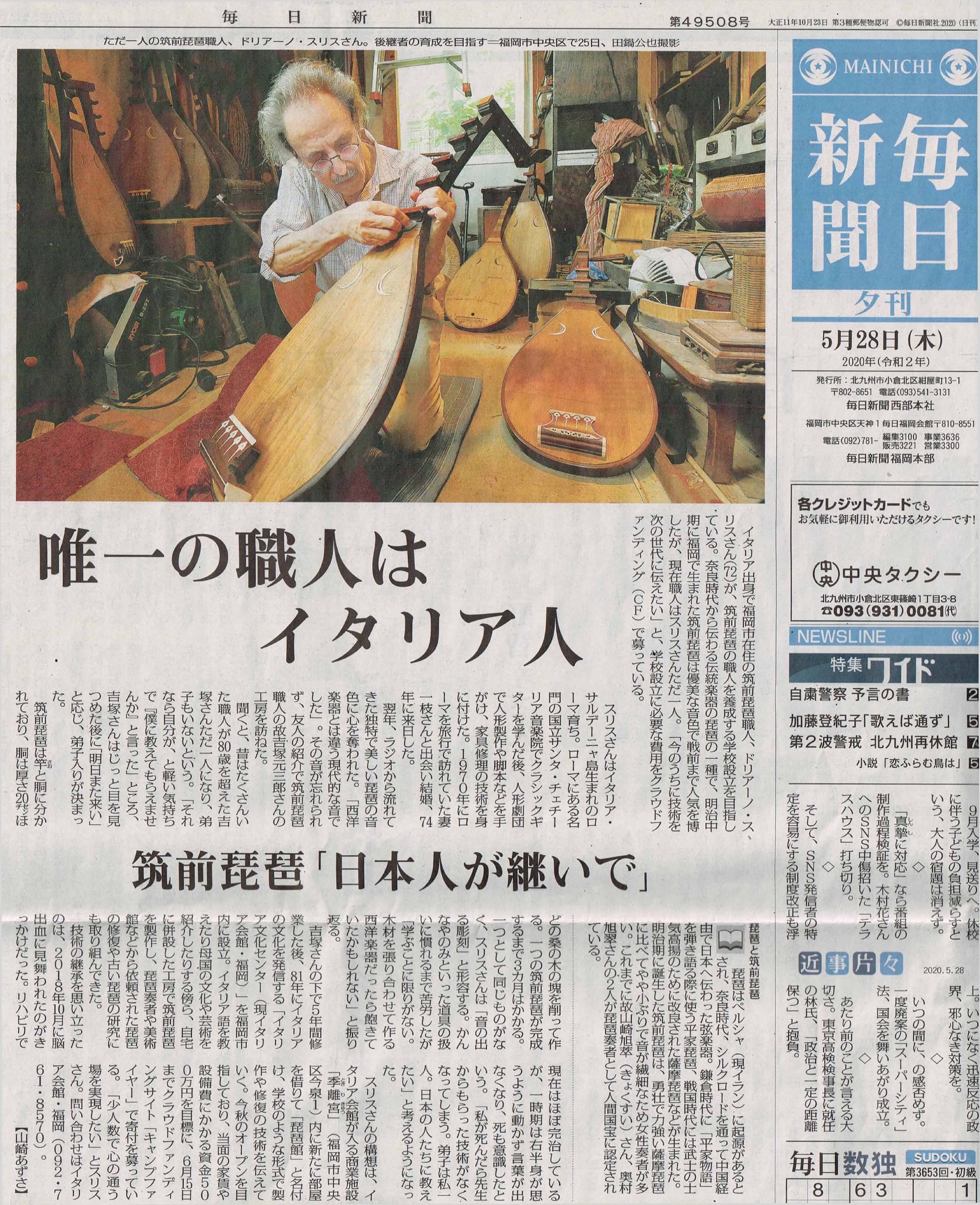 2020年5月28日の毎日新聞(夕刊)