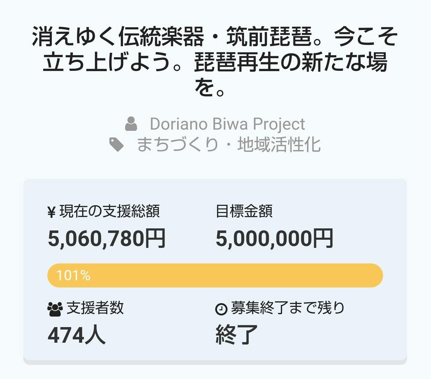 最後の最後に目標金額まで達成出来て、本当嬉しいです。感謝の気持ちでいっぱいです。皆様のおかげです。出来るだけ早くリターンをお送りしたいと思っています。