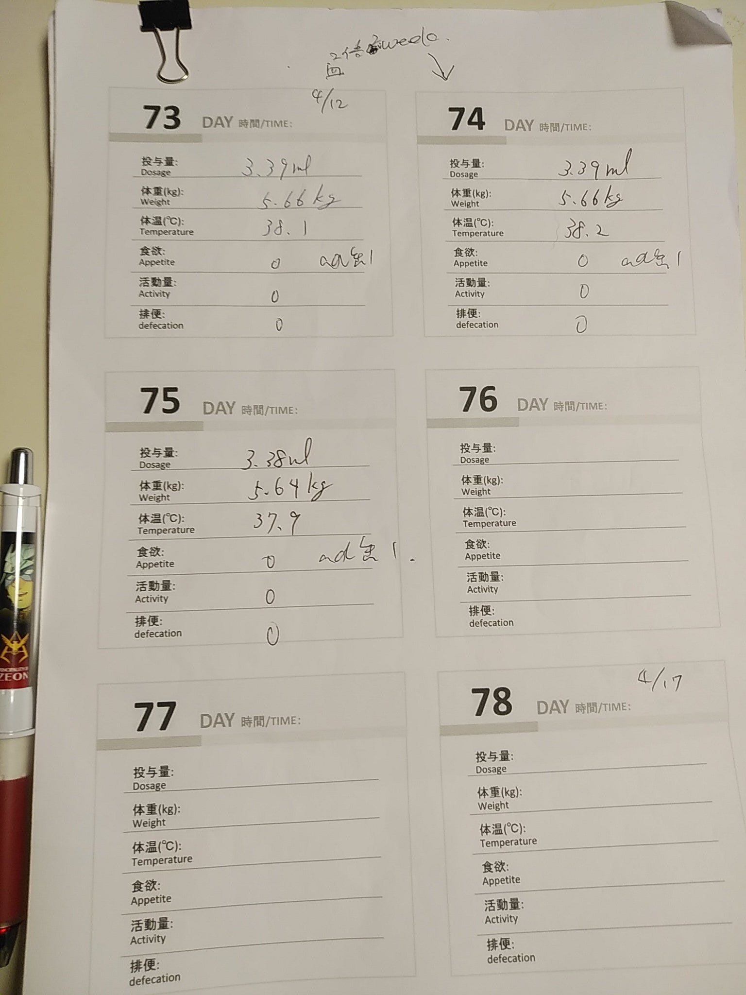 ③MUTIAN社の担当さんの指示で、遊ばして神経症状の確認動画の撮影をして送るように言われて遊ばせた様子。
