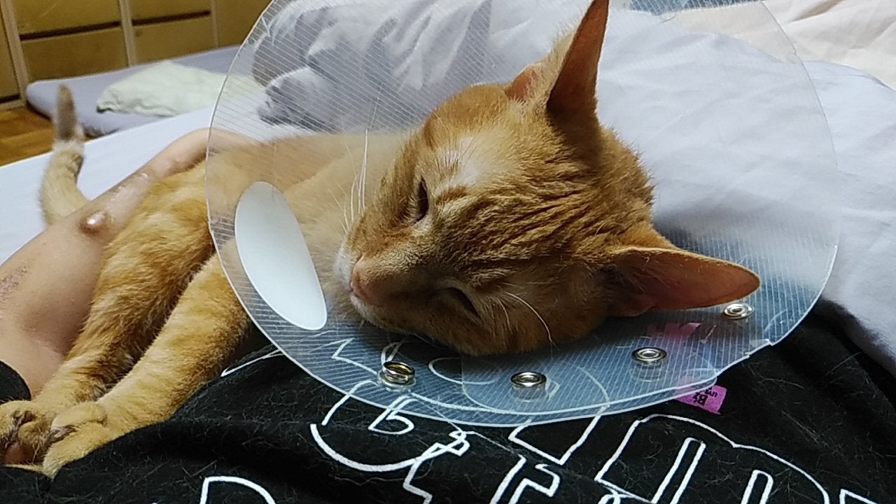 Dear Patrons,About Post 2: (published on 2020/04/11 20:00)Kuri-chan usually sleeps like this on my bed.Kuri-chan's update:Having got to take injections everyday for the last 70+ days since 31stJan, Kuri-chan's blood test result shows that he is doing well. Though,his stress level may be reaching at the top. He has shown us he hashigh endurance but it is somewhat weary nowadays. He often mistakes myfootsteps as my son's and tries to hide himself from going to the vet,but despite his best effort, my son takes him to the vet at the samehour everyday.MUTIAN injection treatment is no easier for the vet as well. Due to themany injections which Kuri-chan had so far over the last two months, heis suffering from many ulcers formed all over his back, thus the vetalways strives to find the best spot on Kuri-chan's back where he can dothe injection.But in particular, on Tuesday April 7, and it happened at this one time,that Kuri-chan screamed and struggled like never before. The vet had totry the injections three times, and at one time, the vet even stabbedhimself....No one could tell why it was so painful for Kuri-chan that day compareto any other day, but may be, the injection went in right on one of hisulcers..... It is so heartbreaking and disheartening to see myKuri-chan bearing with the pain like this, nonetheless, before or afterthis date, Kuri-chan has never ever attacks us back.In terms of Kuri-chan's appetite, he eats only small amount at a timebut sadly he is no longer keen to be fed by my son. Kuri-chan demandshis a/d canned food every 1.5hrs-3hrs only when I am near him, and hewould eat more or less the whole can a day.We are so grateful to Kuri-chan's god father that we received two casesof a/d canned food from him.Once a day, we allow the big sister, Maria (the GSD), and the youngersister, Sayla (other orange tabby) to see Kuri-chan for about 5-60minsso that they can play and unite as a family.Maria has been suffering from some unknown cause of problem with her owndigestive system but when she is stable she plays a good sister (notstealing Kuri-chan's food etc) and sleeps quietly at the back.Kuri-chan is gaining his weight steadily back to his normal, and theamount of MUTIAN he needs to take stays at double doses, which is about3.4ml. As a 5ml bottle of MUTIAN costs $379, the three months worth ofMUTIAN, together with everyday's visits to the vet are tremendouslyexpensive.It is not good time for us Human neither as of the recent rage ofCODIV-19 everywhere around the world. Due to my health circumstancesand conditions, mainly with the dialysis and related problems, I have tobe extra cautious to stay alive, but I cannot help to feel so powerlessin supporting Kuri-chan, and keep asking myself, whether making thedecision back in January to give him a 84-days treatment to fight withFIP was the right idea or not, just because of I wasn't ready to let himgo, wouldn't be this a torture on him?13 more days till the end of the treatment programme, only 13 more days,but yet, another 13 more long days for Kuri-chan and us.... etc....But looking at the figures such as those 700 patrons who have supportedand backed us in the first project, those new patrons in this secondproject, those 780 people subscribed to my YouTube channel, and thosewho are helping to spread the words on Facebook & SNS, all I know isthat I have to be strong as Kuri-chan is, as he is the one doing so muchin this, we will somehow manage to live until your contributions anddonations reach us.Thank you for your support.Love from Maiko KyougokuPSJust to cheer up, it was my son's birthday yesterday (April 10), heturned 19 years old, and we ate Cheesecake!