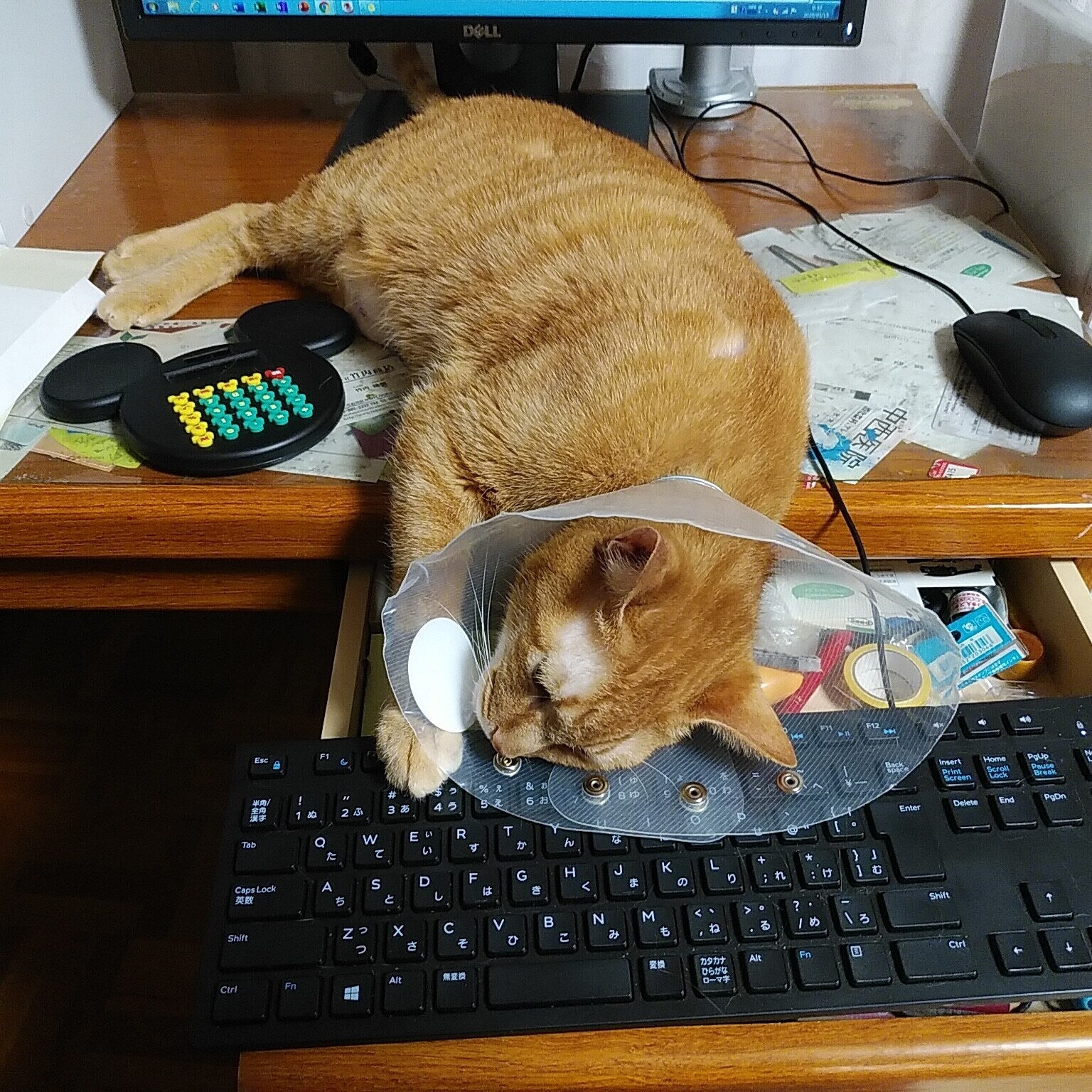 すぐ出したので、再度今度はカプセルのまま。六錠と水。猫は嫌がって噛んだりするものですが、栗ちゃんは、人を傷つけない良い子ですので、激痛注射同様に、攻撃なく、飲んでくれました。