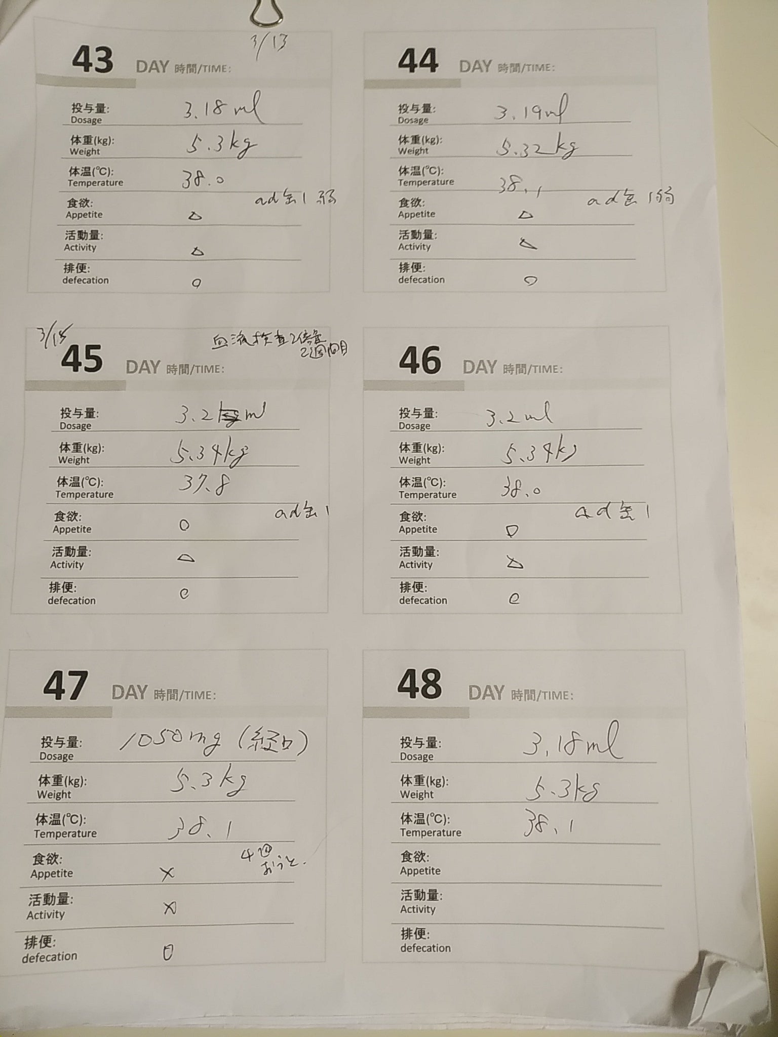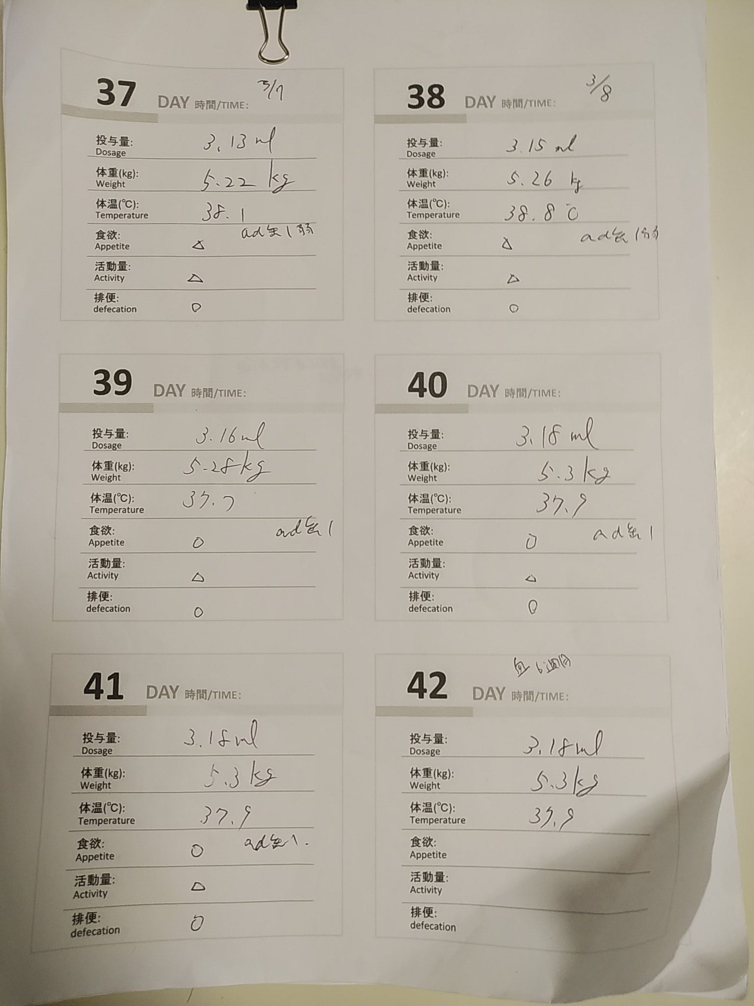 40日目~の記録用紙