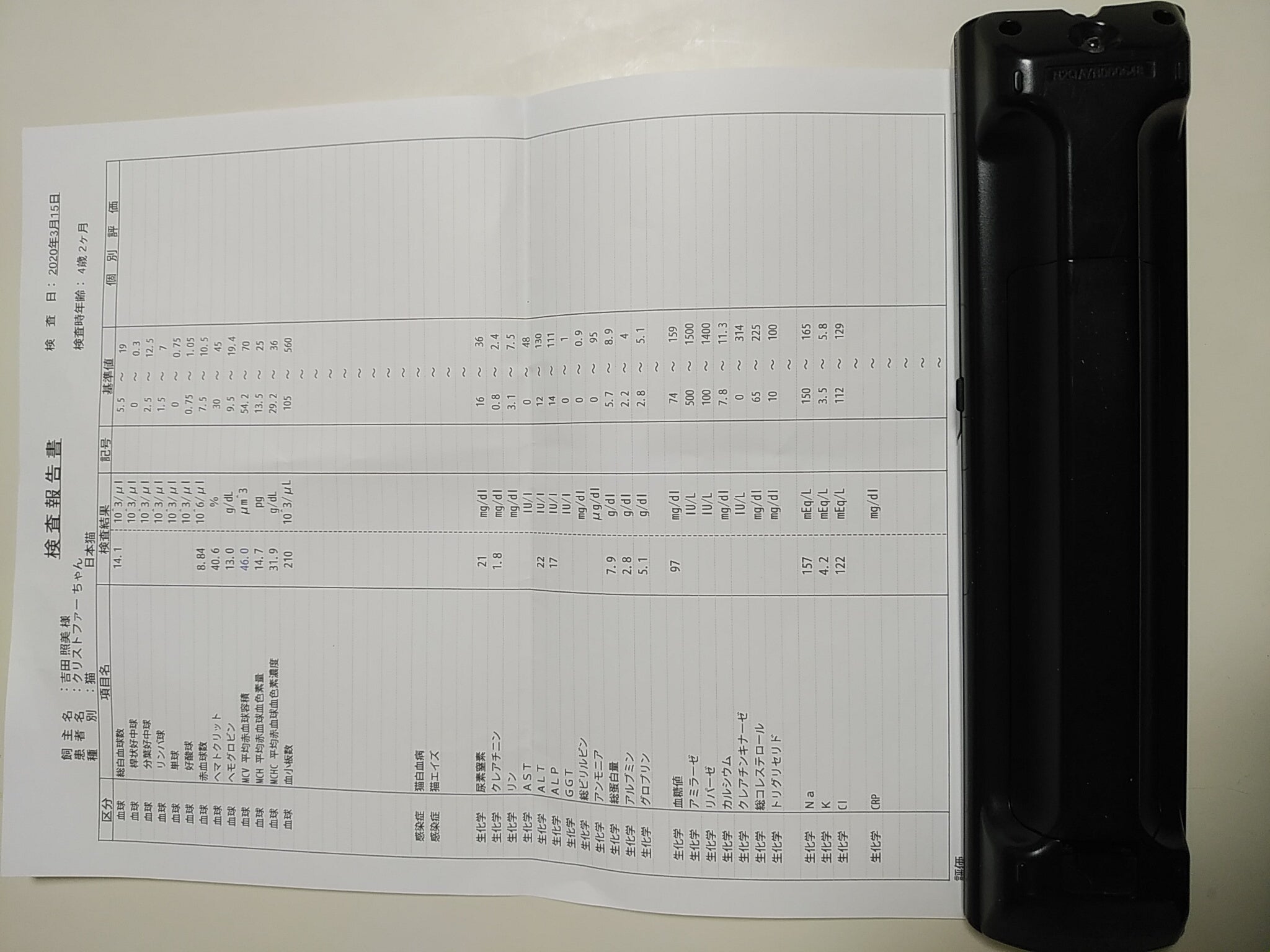 検査の数値はほぼ基準値にはいっていました。
