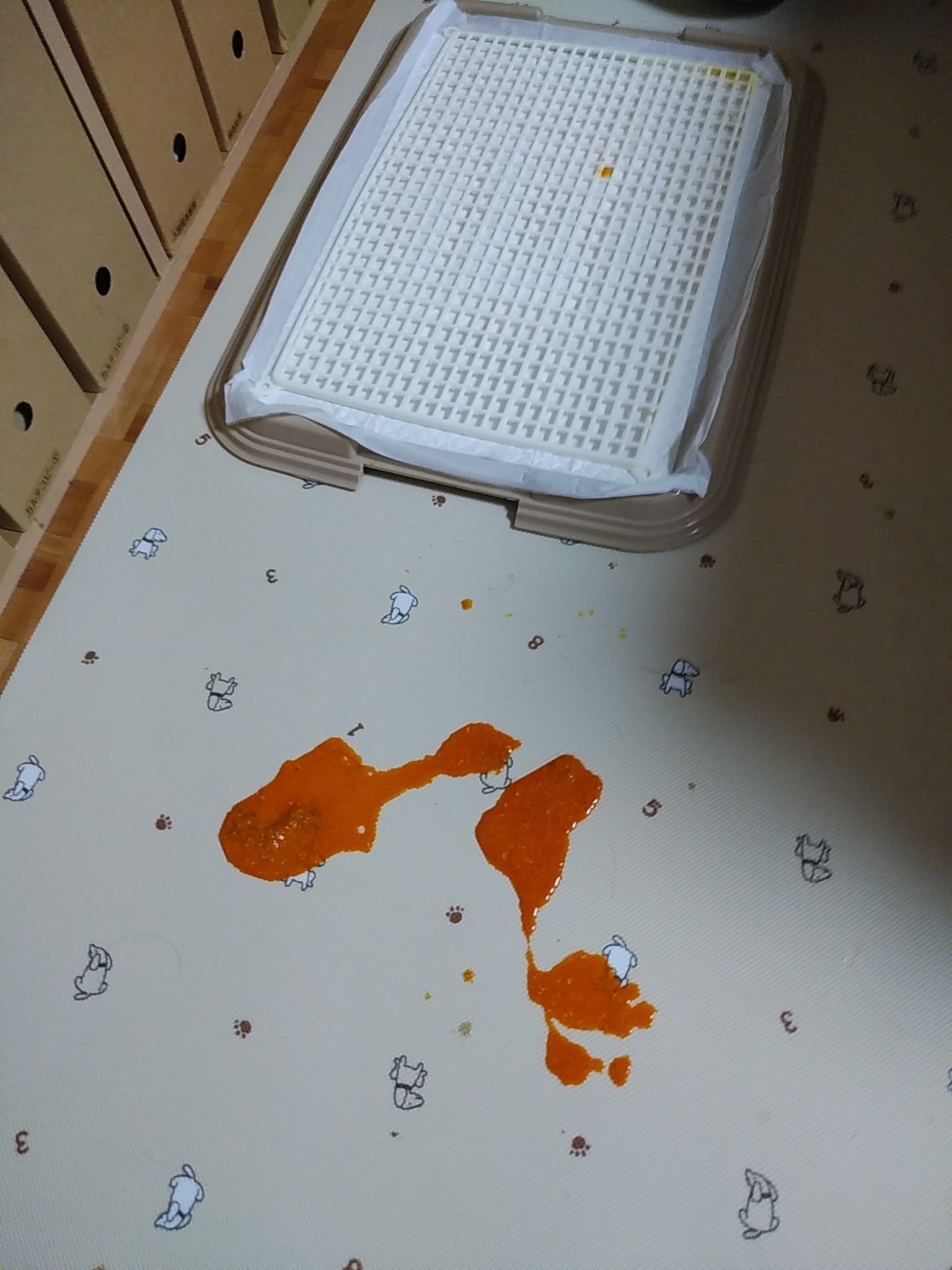 スグ吐くかもなので、しばらく待合で待機し、帰宅してからも一時間以上見守ってから、離れたら、戻ると吐いてありました。