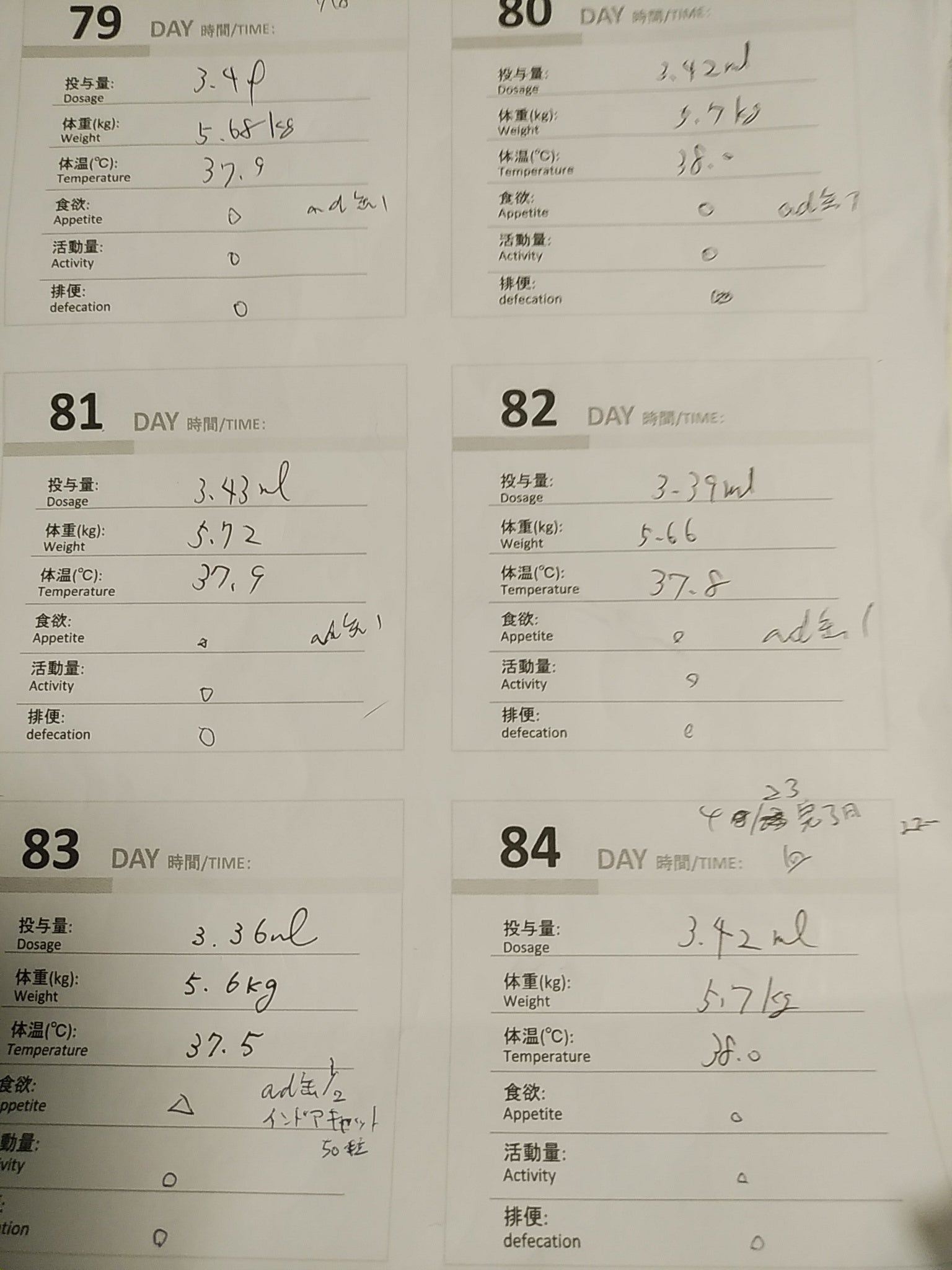 体重も順調に増えて、薬も体重量で、計算して使っています。