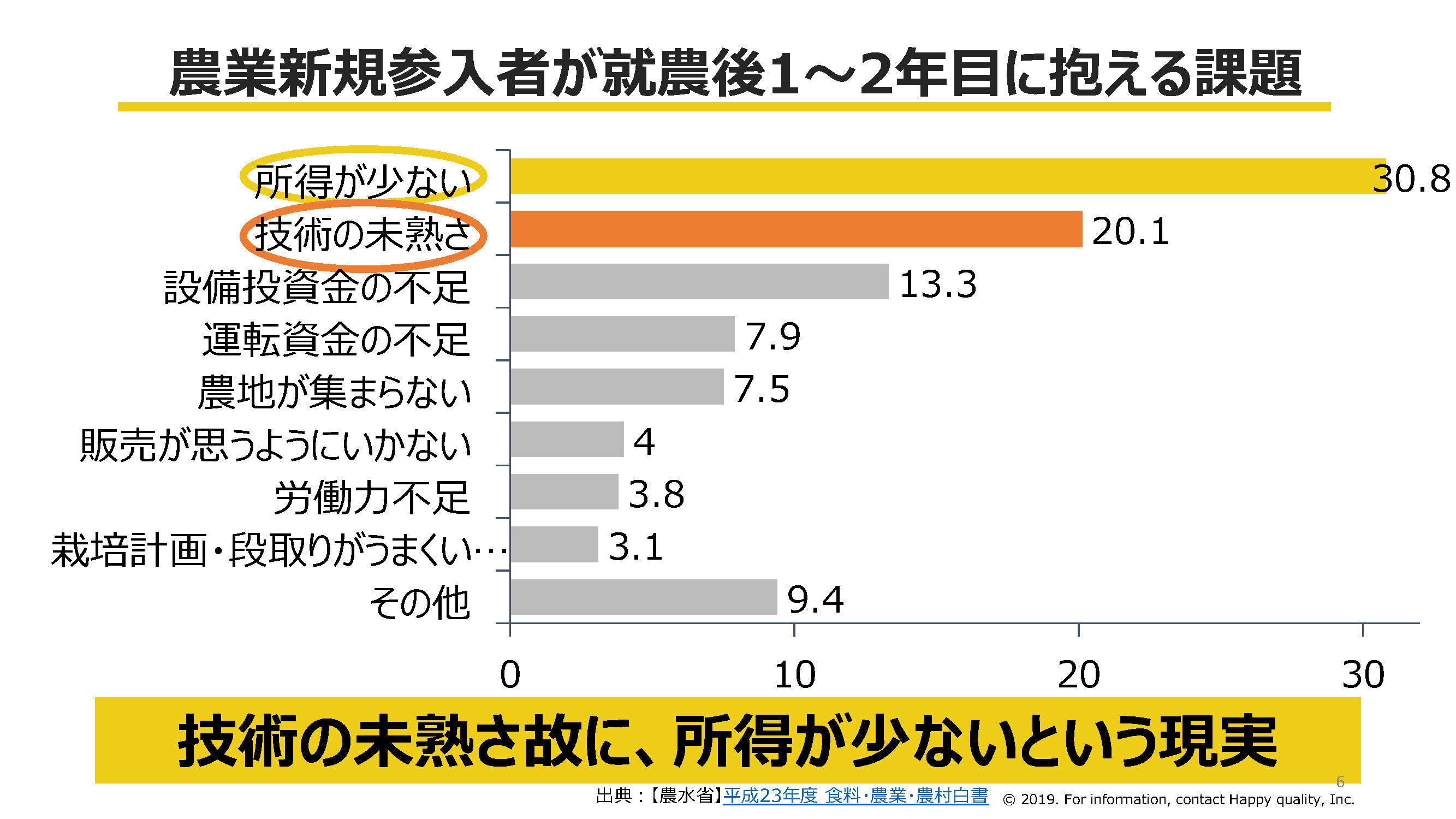 農業を新しく始めた人たちの約半分が、技術の未熟さゆえに、所得が少ないという課題を抱えているんです。
