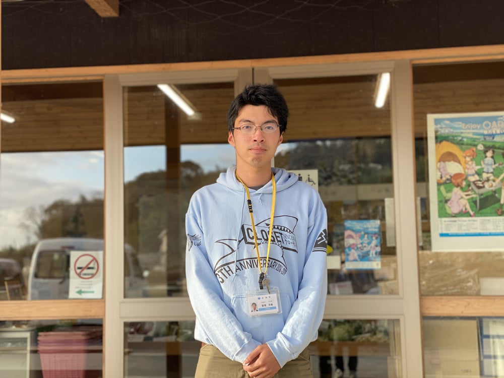 普段はここ「夕日の郷 松川」の運営補助を行っています。具体的に言うと、直売所に出す商品の納品・仕入れ業務の同行、農家さんを回って野菜を持ってきたり、直売所での販売ですね。他、施設内にあるキャンプ場・バーベキュー場の運営管理も行っています。