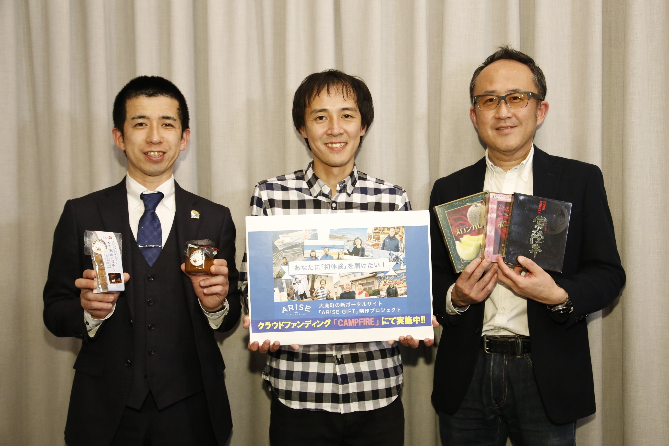 こんばんは、ハイド&ルークの廣岡です。本日無事に、「大洗町の新ポータルサイト『ARISE GIFT』制作プロジェクト」のクラウドファンディングをスタートする事が出来ました!ご協力頂いた皆様、この場を借りて感謝を申し上げます。本当にありがとうございました。お昼にスタートさせて頂き、19時30分からは「ライブ配信番組」を配信させて頂きました。◆大洗町の新ポータルサイト『ARISE GIFT』制作 クラファン開始記念特番【出演】廣岡祐次(株式会社ハイド&ルーク 代表取締役/本プロジェクト発起人)常盤良彦(株式会社Oaraiクリエイティブマネジメント 代表取締役)大里 明(大洗観光協会 会長/割烹旅館 肴屋本店 代表)2012年からお世話になり続けているお2人には、2日前の茨城県庁での記者会見に続いて、今日もライブ配信番組にご出演頂きました!前職の事からもイベントなどご一緒させて頂いている関係で、本当に慣れた感じで安心安定の配信となりました。本日はわざわざ東京までお越し頂き、本当にありがとうございました!!配信では、今回クラウドファンディングに至った経緯や、プロジェクトページに書いてある以上の内容、及びリターン品のオススメなどを話させて頂きました。配信でも申し上げましたが、この「ARISE GIFT」を一言で言いますと…大洗の方と、大洗に訪れる方の架け橋になりたい「ARISE GIFT」をハブとして、町と外の人を繋ぐプラットホームになりたい。大洗町の‟人”の魅力を能動的に発信し、新しい発見を届けたい。将来的には、町の方のコミュニティ形成がしたい。こういった思いで、サイトを作って行きたいと思います。またリターン品の説明もさせて頂きましたが、配信でもお話した通り、今後EC(通販)機能を持ったサイトを運営する前段階として、是非町の物をお届けしたいと思いました。結果、町の皆様とお話する事が出来た事が、本当に有意義な事でした。今回ご支援頂きますと、結果「町の店舗などにも貢献できる」という仕組みになっています!そして、本日の配信の模様は、Youtube・ペリスコープ両方でアーカイブをご覧頂けます。Youtube:https://www.youtube.com/watch?v=RStZtHTwRyI ペリスコープ:https://www.pscp.tv/w/1ynJOpbRROOxR?t=4m46sペリスコープは、アプリをダウンロードしなくてもご覧頂けます。 サイトの方向性などは、プロジェクトページに記しておりますので、リターン品と合わせて、ご支援なにとぞ宜しくお願い致します!プロジェクトページ:https://camp-fire.jp/projects/view/236327
