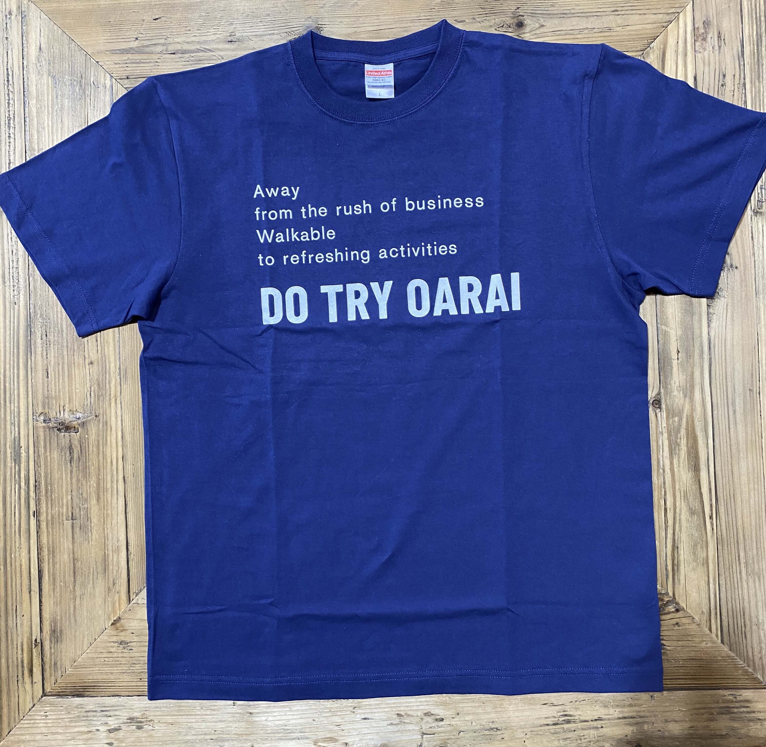 本プロジェクトも、期間が残り15日間となりました!日々刻々と変わる情勢の中、私も残り期間、出来る範囲の事をやって行こうと思います。さて本プロジェクトのリターン品には必ず、「メッセージTシャツ(サイズ4種選択可)」か「ARISE CO-WORKING 1日利用券」のいずれかが付いております。本日、「メッセージTシャツ」のサンプルが参りましたので、ご紹介致します。【メッセージ】Away from the rush of businessWalkable to refreshing activitiesDO TRY OARAI英語表記は、うちの店にいる翻訳家(ARISE CO-WORKINGのスタッフが副業)の山田君に考えてもらいました!「仕事の喧騒から気分を変えて、大洗で❞何か❞やってみようぜ!」というようなニュアンスです。サイズは4種類からお選び頂けます。主に特産品系のリターン品にはTシャツが付きますので、是非チェックしてみて下さい!ちなみに全然参考になりませんが、身長168cmの私が「L」サイズを着用するとこんな感じです。サンプル、Lしかなくてすいません…。上の写真を見ると、文字色が水色っぽく見えますが、正確には白となりますので、宜しくお願い致します。是非普段着でもガンガン着て頂きたいと思いますので、奮ってお申し込みください!
