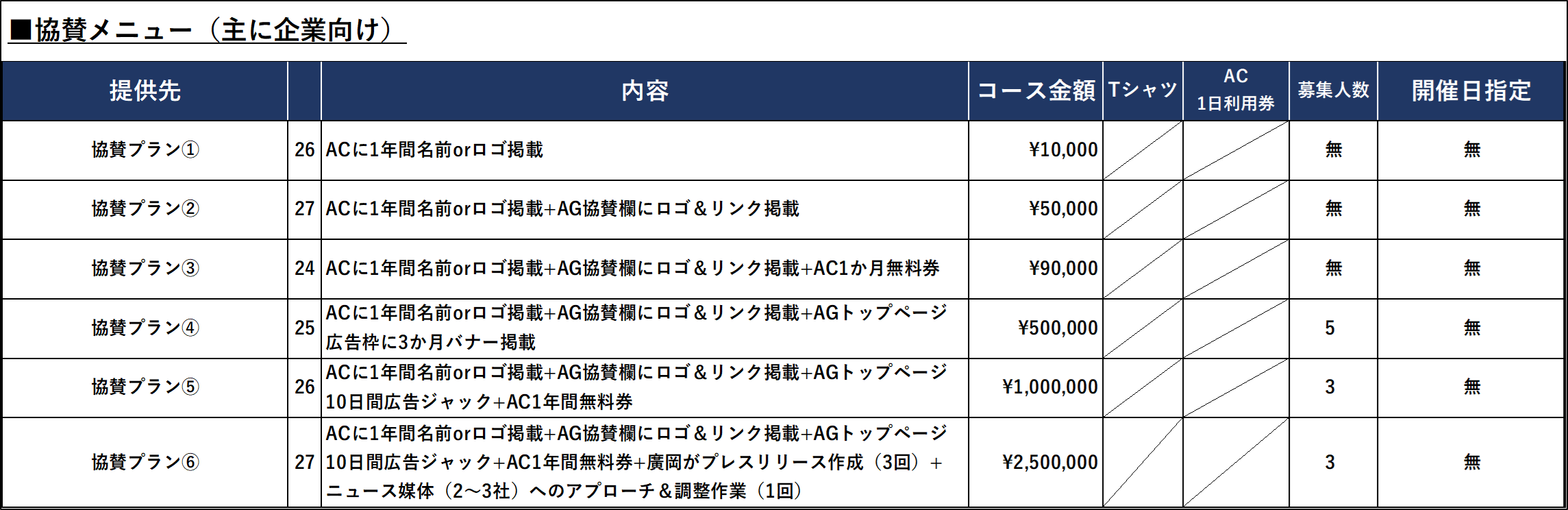 ③ARISE GIFT協賛欄に1年間お名前掲載(文字小):20,000円<限定無し>