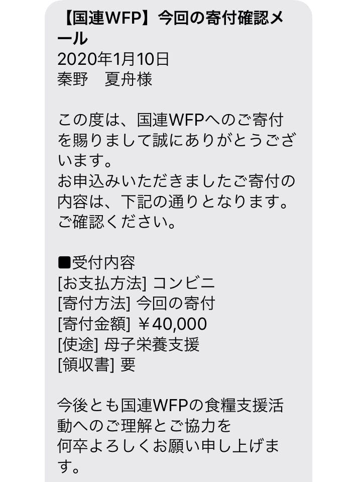 ※国連WFPに寄付をした時のメール