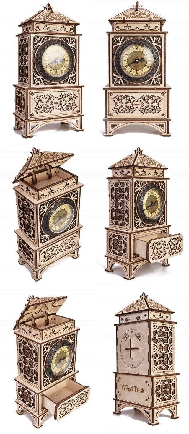 クラシック、という言葉は古い物事を指すのにも関わらず未だに多くの人が追い求め憧れます。そう、クラシックは現在の物事の原点であり決して色褪せないのです。ウッドトリックのクラシッククロックもその様な古き良きデザインを踏襲しています。中の時計ももちろん実際に動きますので置時計としてこの上なく美しいインテリアになります。時計の上部分と前面部分に小さい入れ箱があり大切なアクセサリーや宝物を入れておく事が出来ます。立体的で細部まで練り込まれたデザインですので誰しもの目を引きますし、お部屋に飾ると引き立った存在になります。