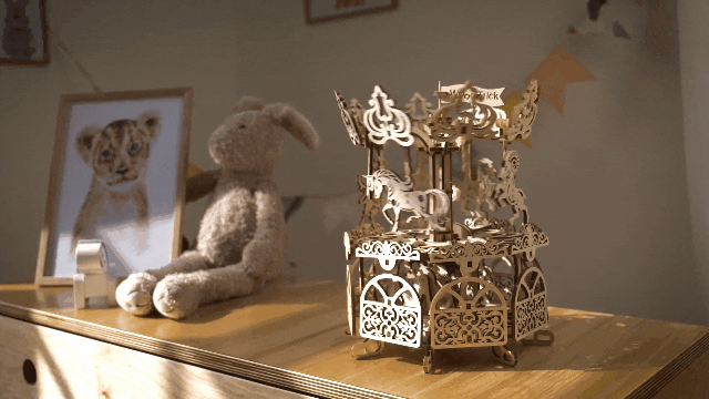 その上、ウッドトリックの多くのモデルはゴムの力で自走したり動かしたり、オルゴールが付いていたり実際に動く時計のモジュールが付いていて置時計や掛け時計になったりと、観賞用のインテリアだけではなく実用的に扱うことが出来ます。