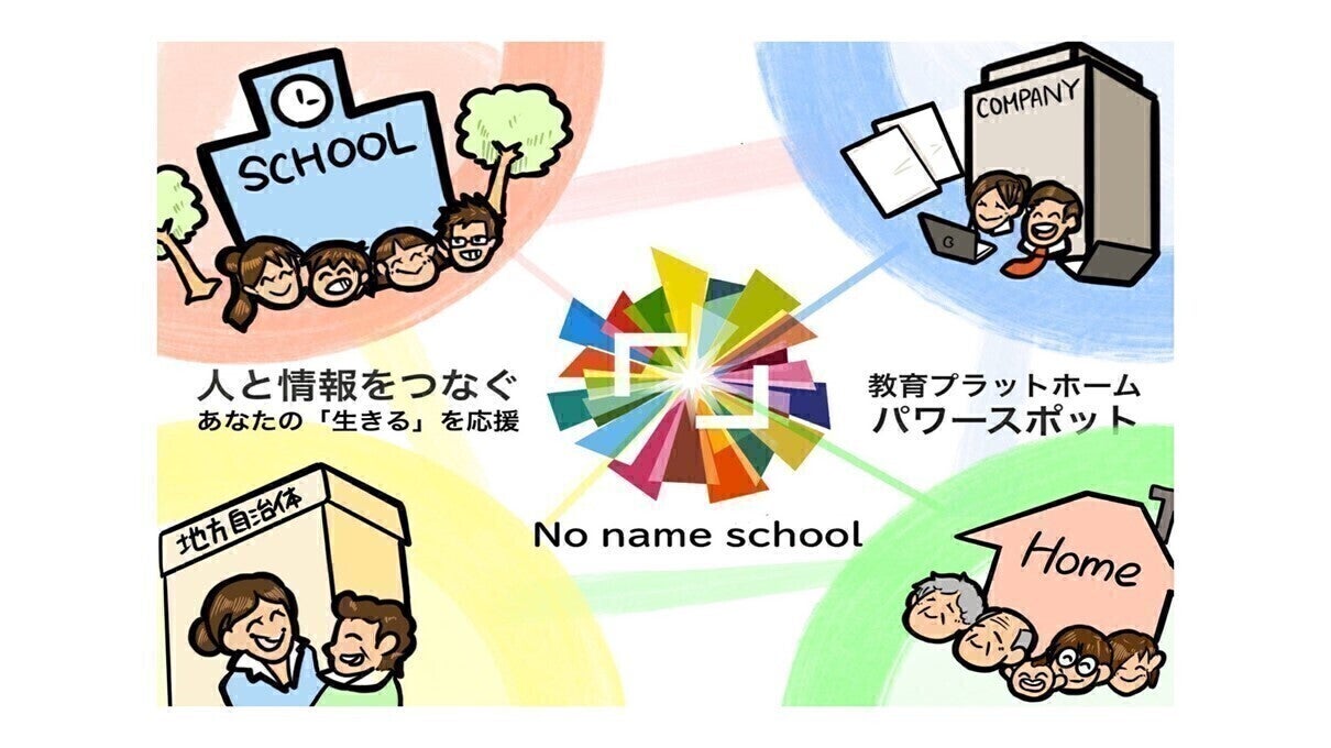 このように、「 」No name schoolは、子どもから大人まで、学校や会社、地域、どの年代でもどんな場所でも行われる教育をつなぐプラットフォームとなり、みんなの『生きる』を応援するパワースポットを目指します。
