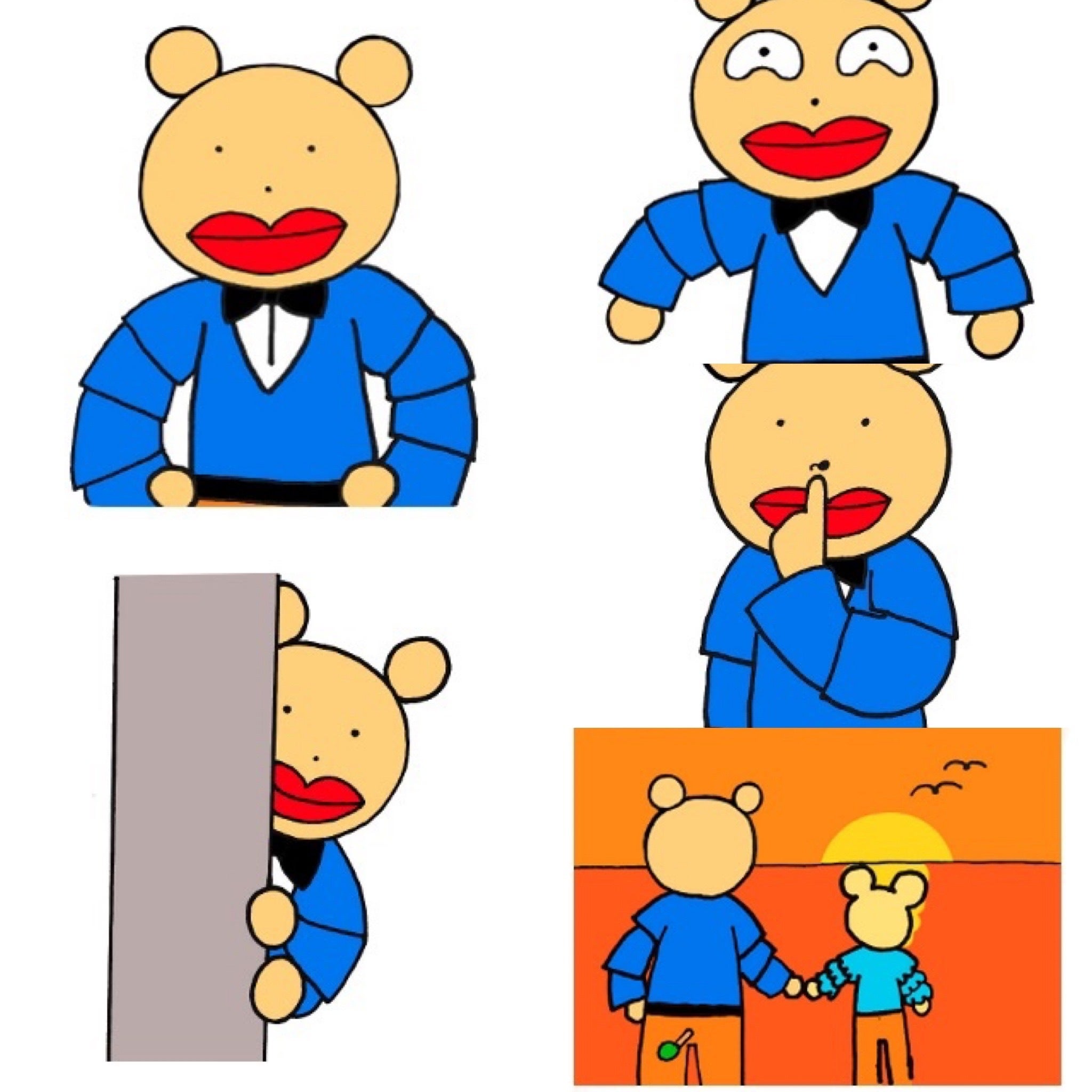 マンボくんの動きのスタイルは憧れのドアラさんのように、紙とペンで人と会話します。