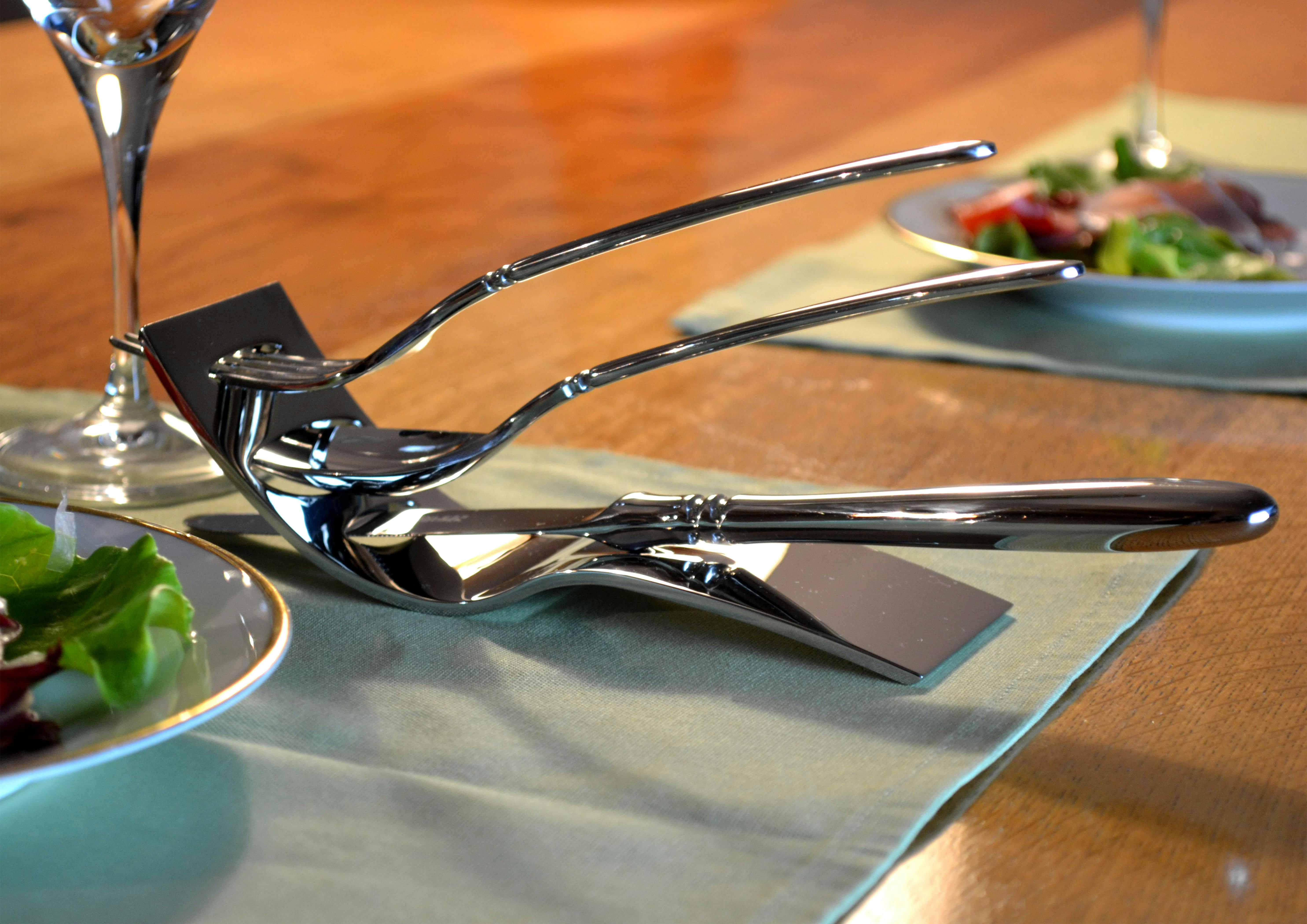 カトラリーの歴史はせいぜい200年ぐらいのものです。用途別に最低限でも正式マナーは9種類。文明開化で日本に入ってきて約150年経ちます。昭和では洋食に箸を用いるのはタブーでしたが最近はかなり自由になってきました。土足の文化圏にマナーを寄せるよりも、日本のお作法で清潔に使うにはカトラリーにも箸置きに変わる何かが必要なのではと考え、今回のクラウドファンディングに至りました。