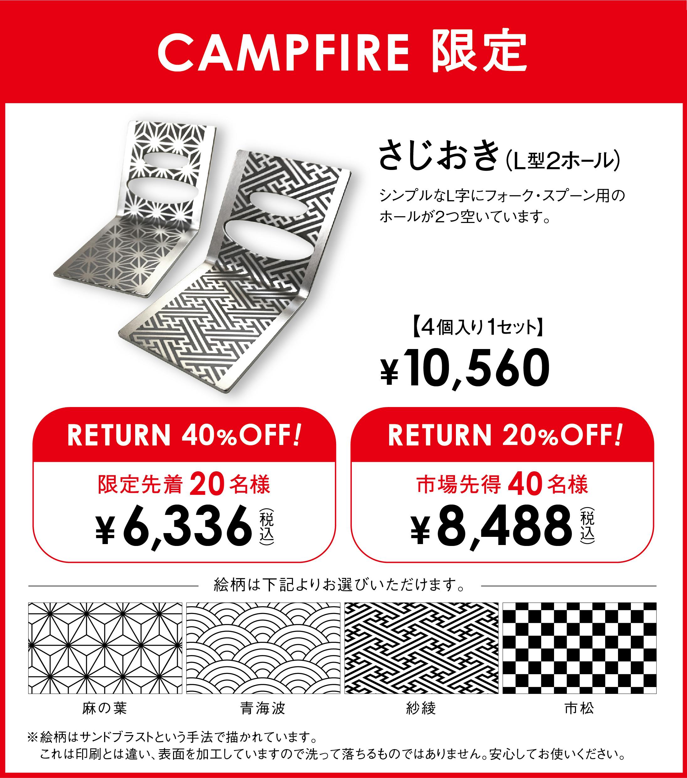 単品販売はCAMP FIREだけですので是非ご支援お願いいたします。(一般的なカトラリーであればほとんどが問題なくお使いいただけます。)