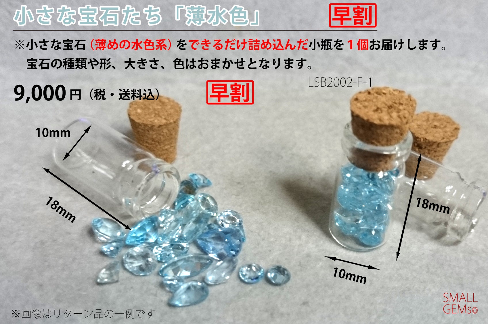 リターン商品は、小さな宝石たちという特性上、お届けする宝石は種類、形、大きさ、色合いなどが商品ごとに異なりますので、予めご了承ください。