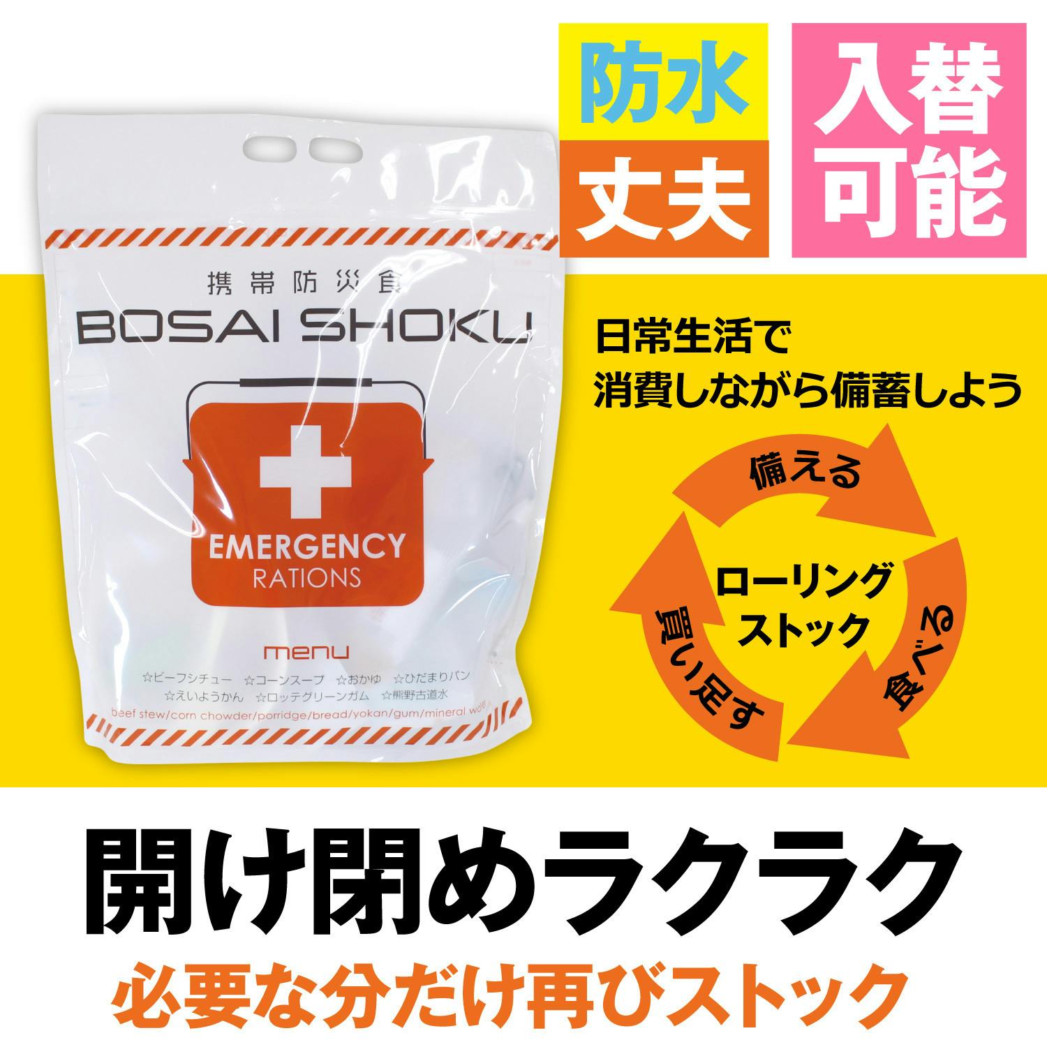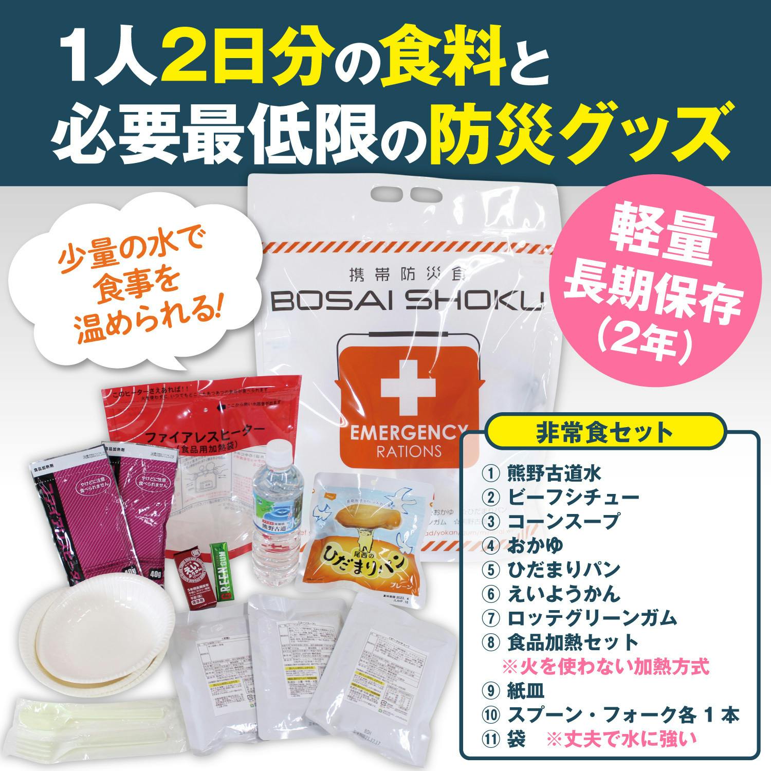 発熱剤を使用して、救助を待っている間、温かい食べ物が食べれることが最大の特徴です。
