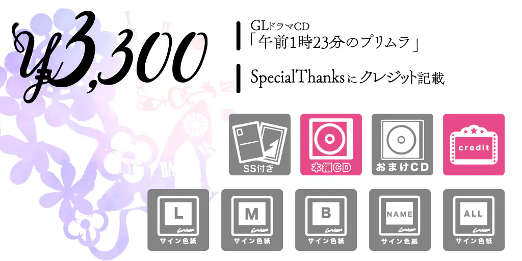 ・specialThanksにクレジット記載・GLドラマCD「午前1時23分のプリムラ」