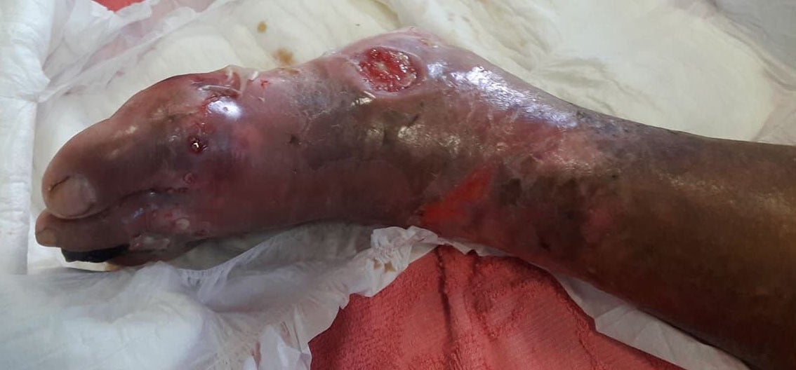 (糖尿病で腐ってしまった患者の足)