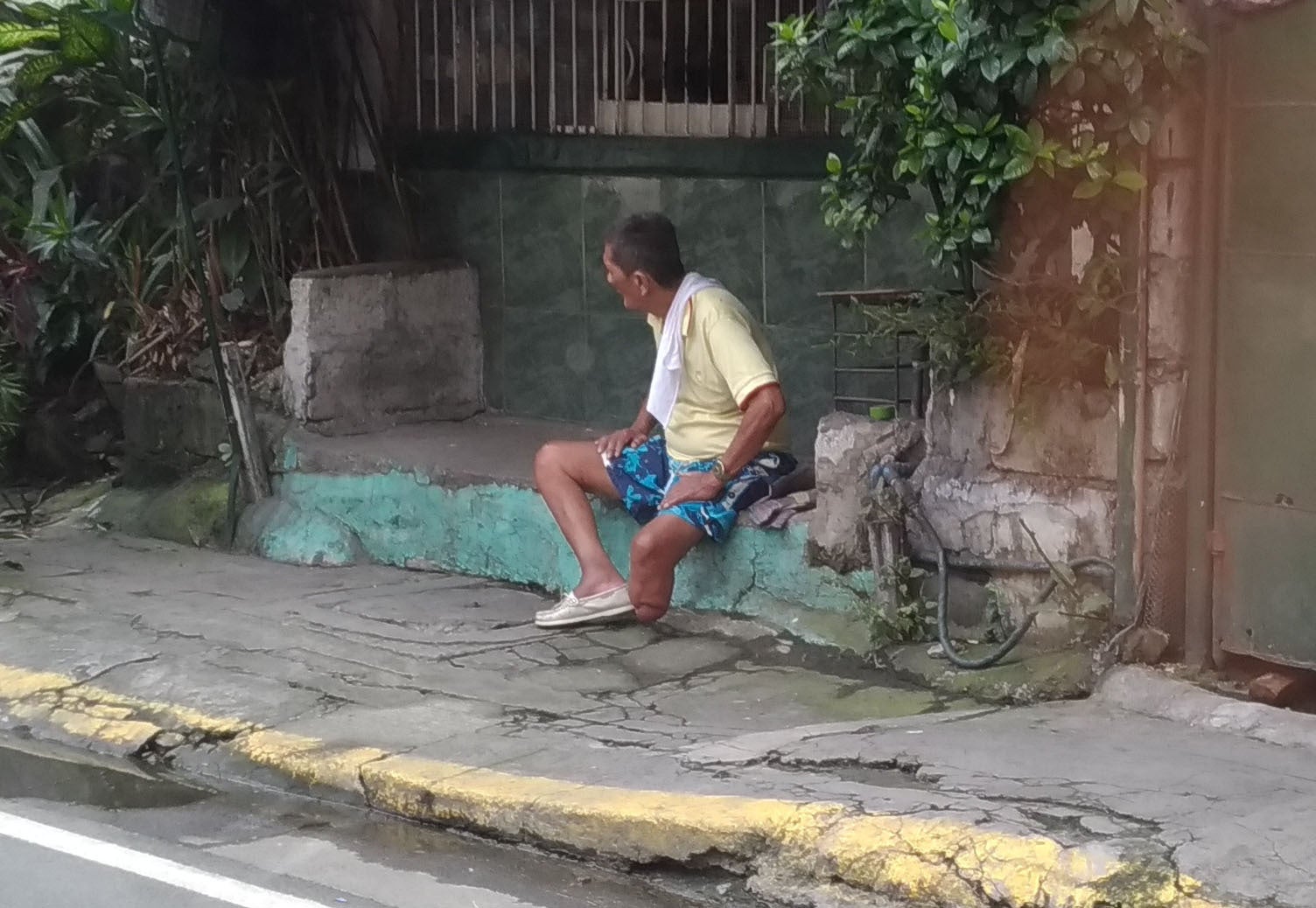 (やることがなくて、日がな1日家の前に座っているだけの貧困障害者)