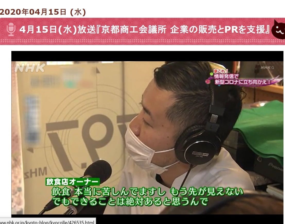 4月15日(水)NHK18:30~放送の 京いちにちのコーナー京これにて放映されました。