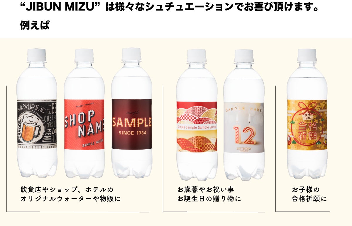 ■お好きなデザインをラベリングした“ JIBUN MIZU を1ケース(500ml × 24本) ”お送り致します。