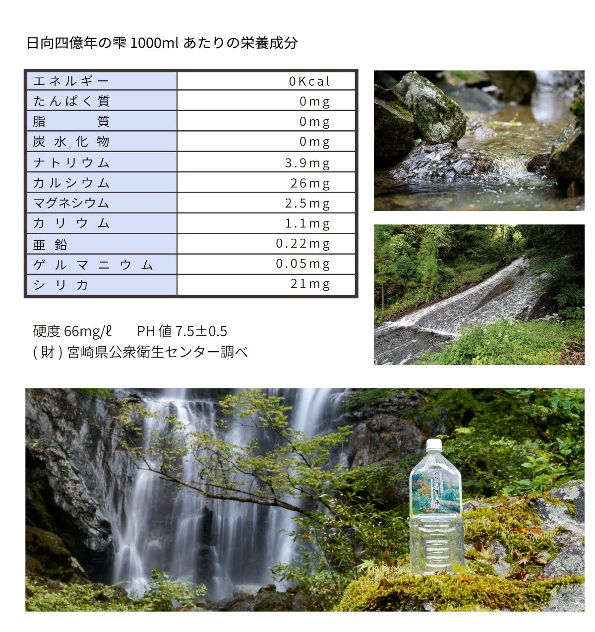 《 日向四億年の雫 (ひむかよんおくねんのしずく) 》というナチュラルミネラルウォーターを製造販売しています。