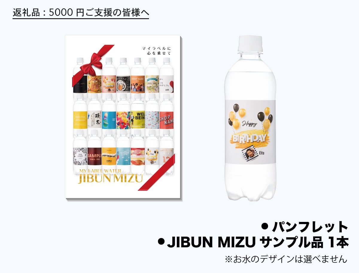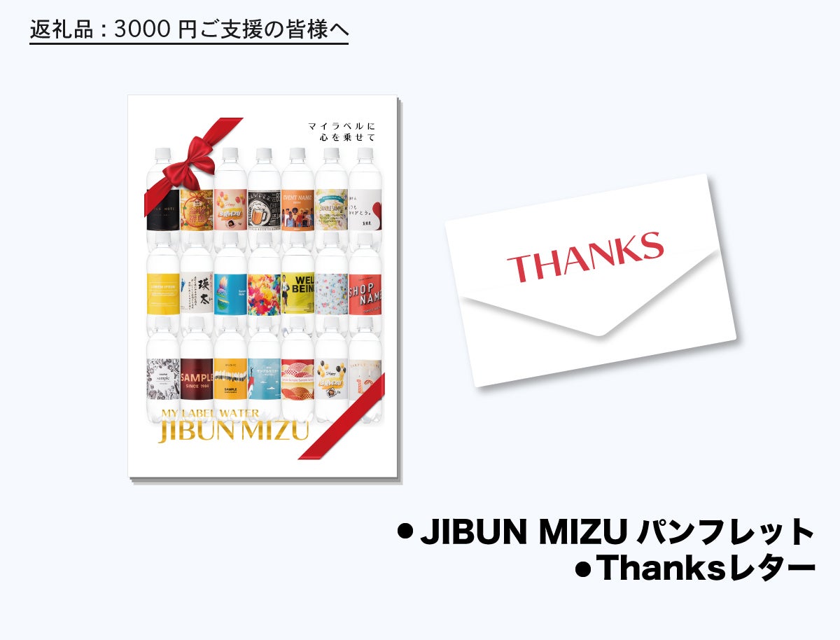 このプロジェクトにご支援いただいた方へは、今回このオーダーメイドボトルウォーター
