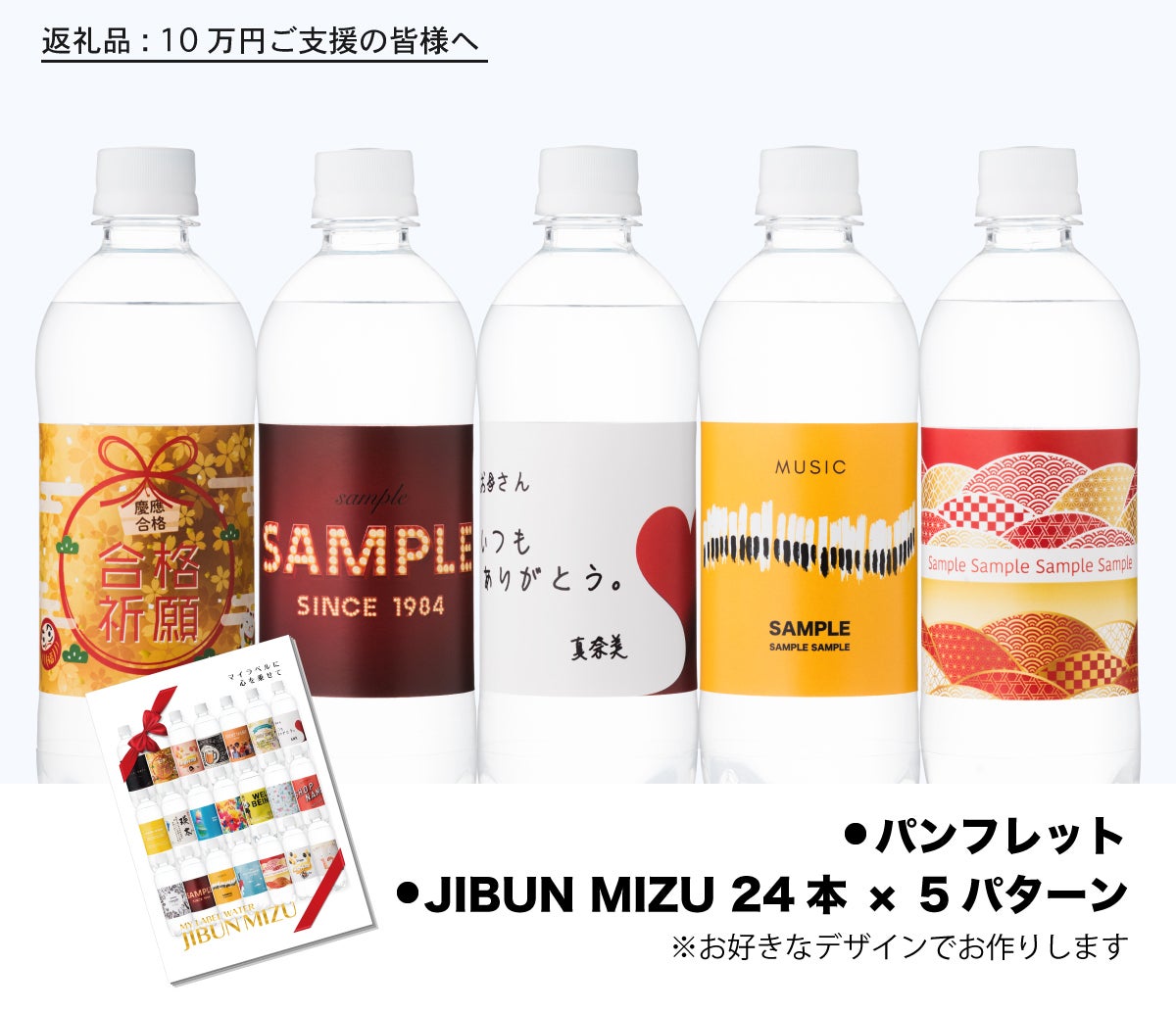 ■お好きなデザインをラベリングした“ JIBUN MIZU を5ケース(500ml × 24本を5ケース) お送り致します。