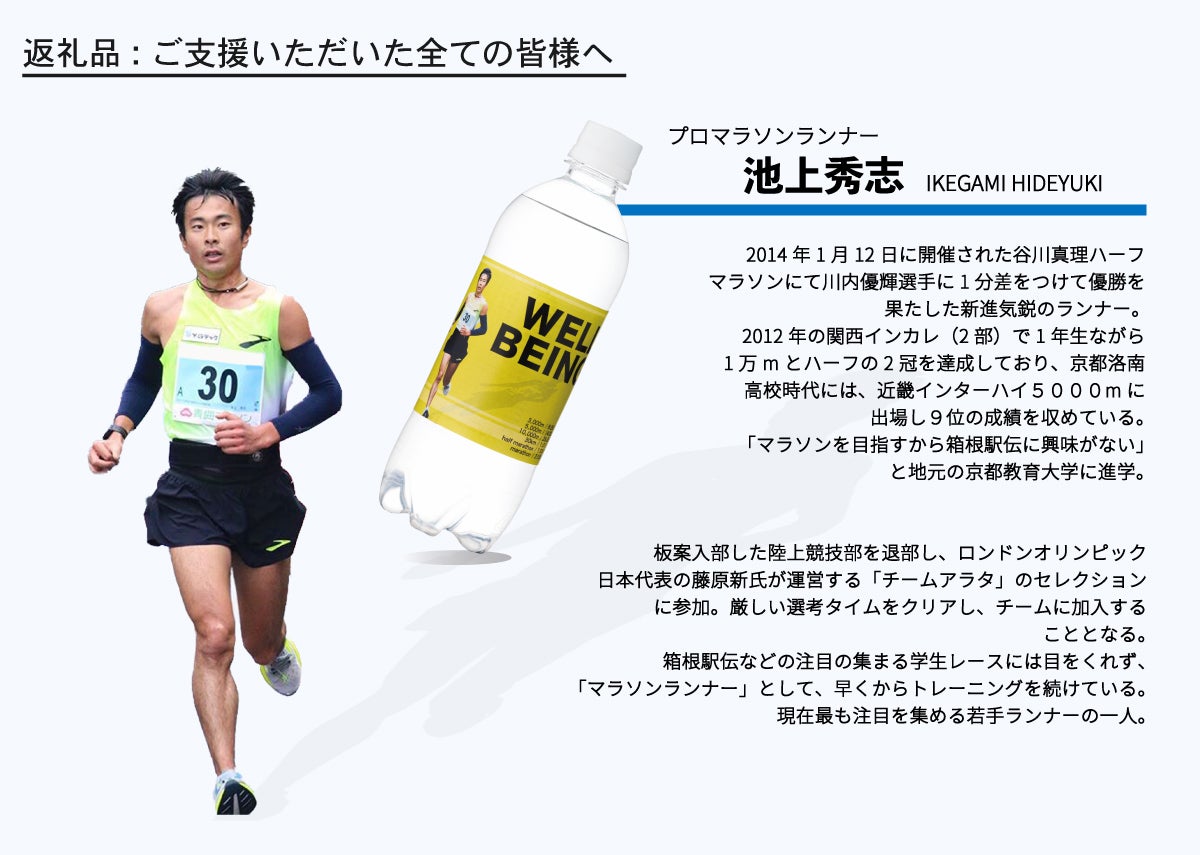 池上選手の講義動画は池上選手の公式ウェブサイトから販売されているのですが、今回こちらのクラウドファンディングに協力してくださった方には池上選手が《健康と水について》解説した講義動画をご提供致します。