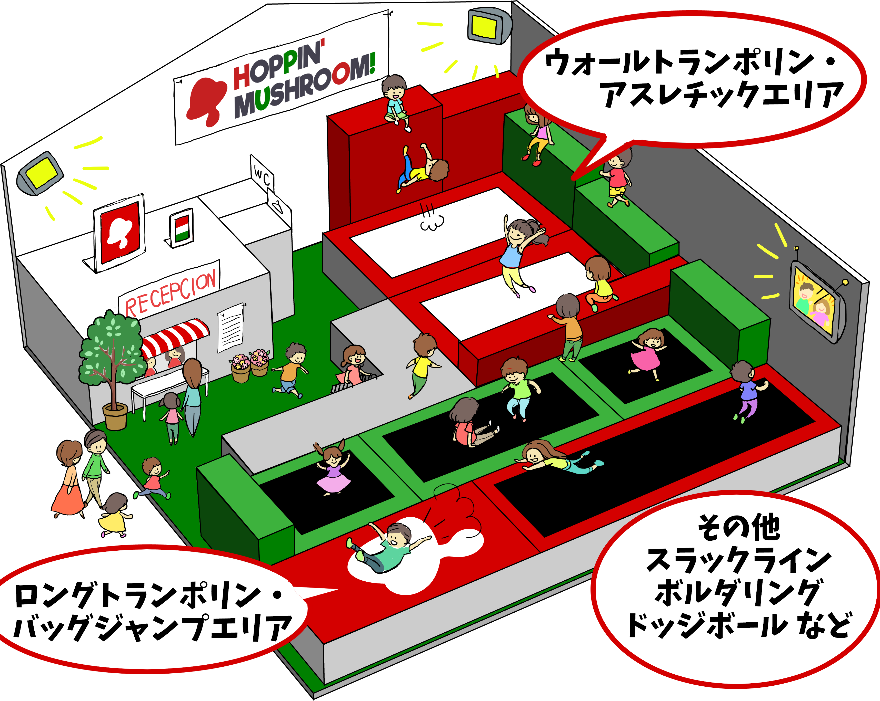 そこにトランポリンパーク“ホッピンマッシュ!2”を立ち上げます!