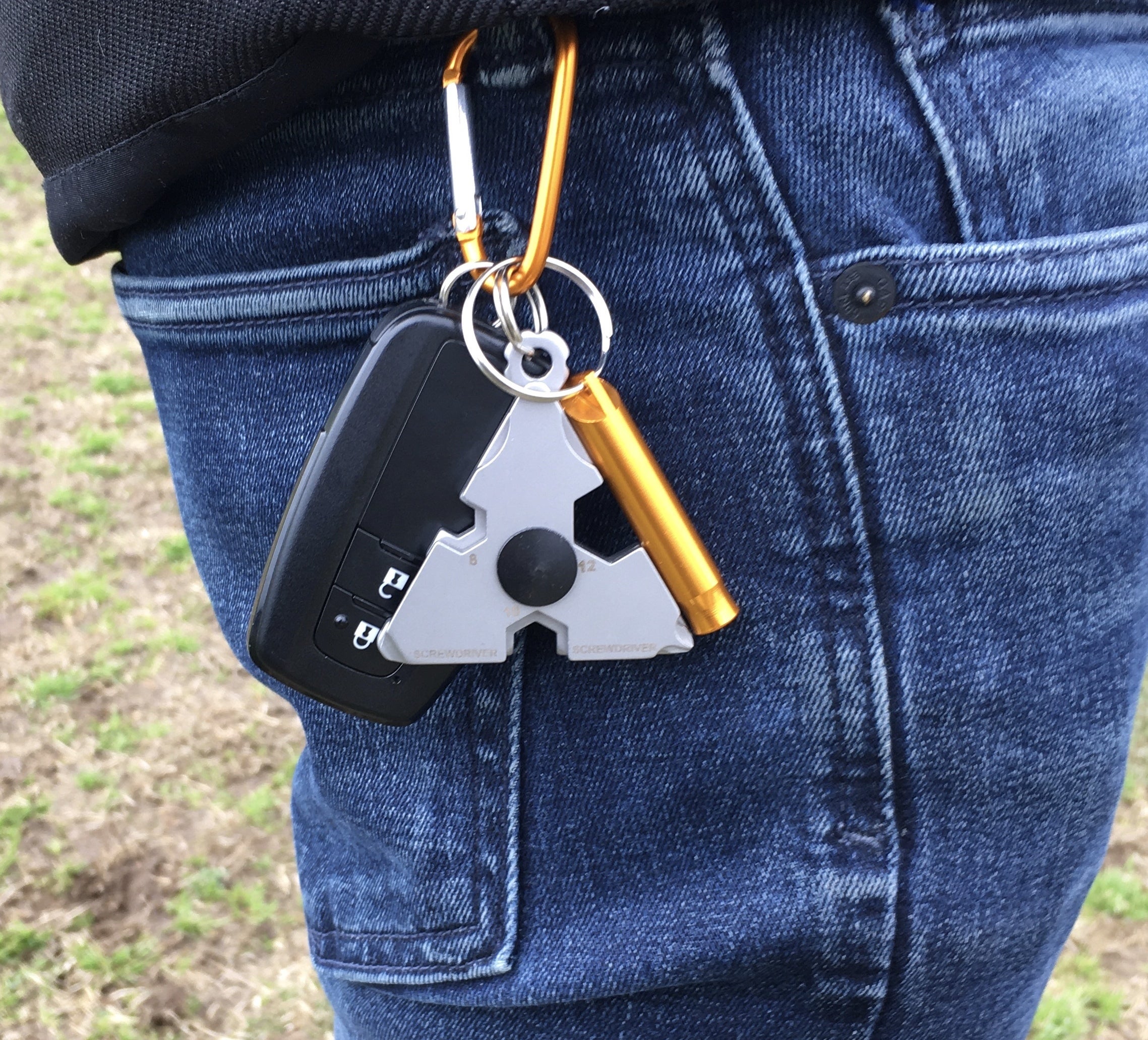 世に出ているマルチツールはカード型であったりカラビナ型であったりとありきたりで見飽きてしまったものばかりですが、【デルタマルチツール】は全く新しいスタイルを軽量でコンパクトに実現しました。