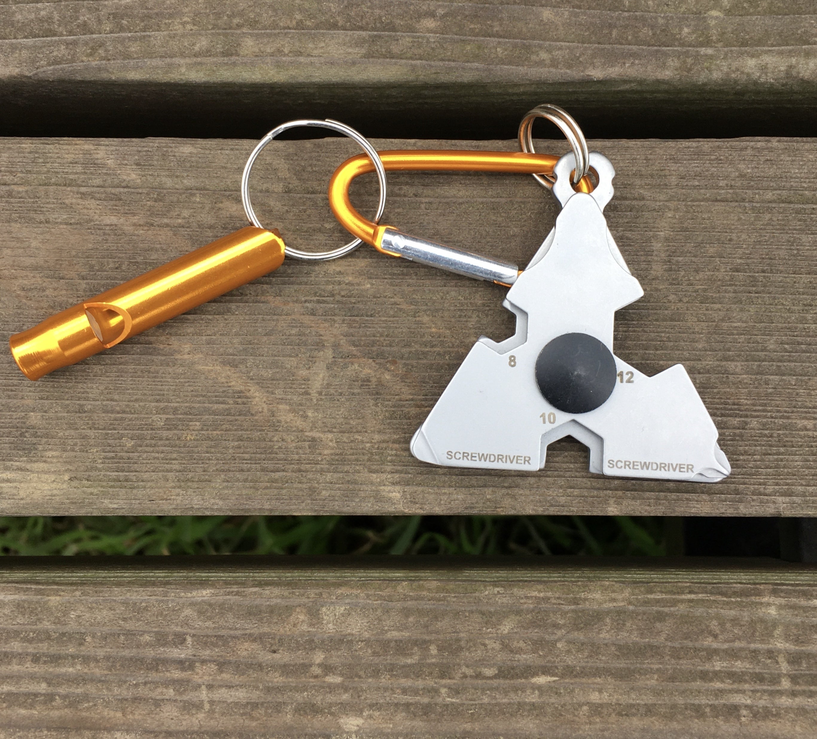 アルミ合金カラビナ、ホイッスル付き。お礼の手紙も添えさせて頂きます。 ※送料込み