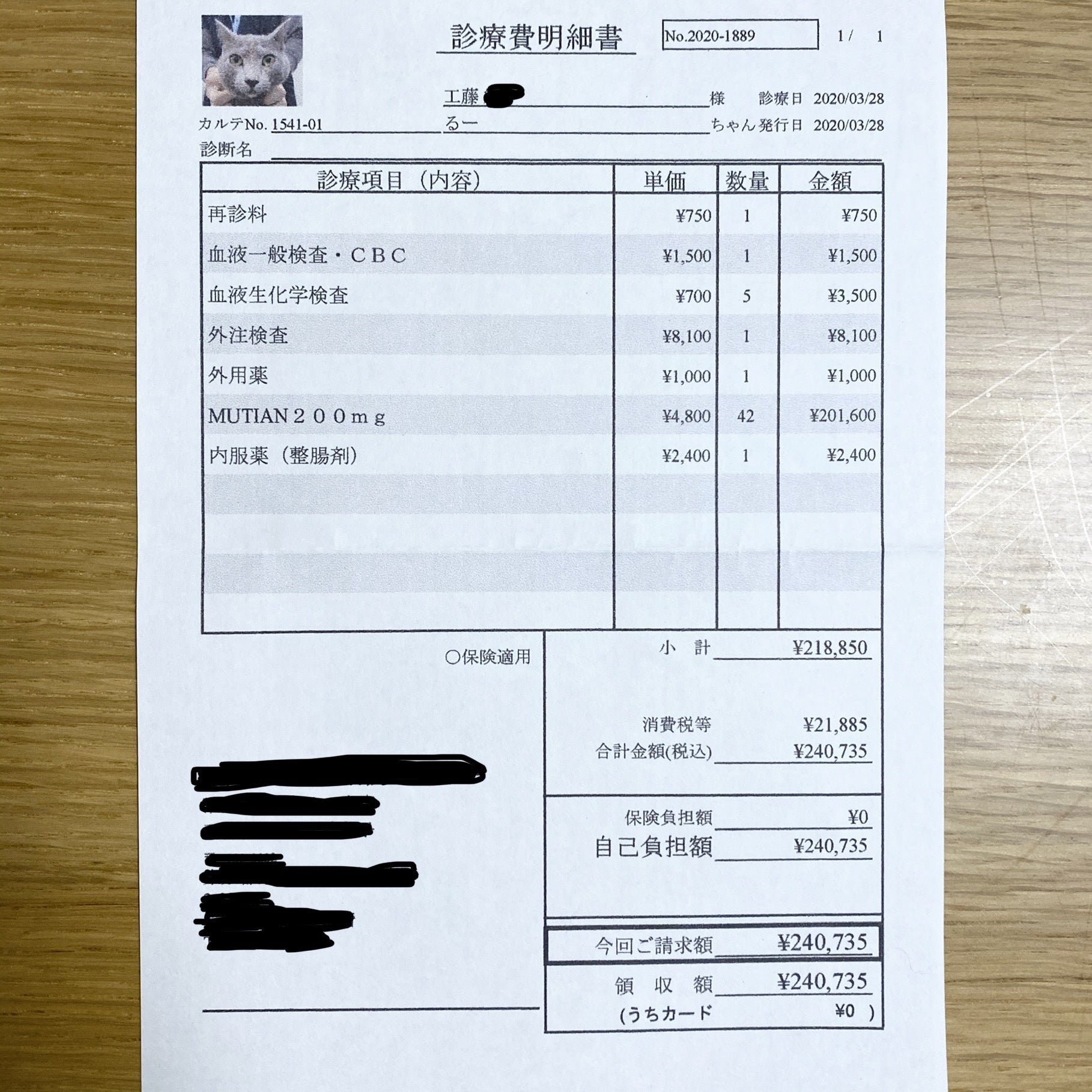 今回は院内の血液検査と、外注の血液検査(体内の炎症を調べる)を行いました。外注の結果は次回になります。