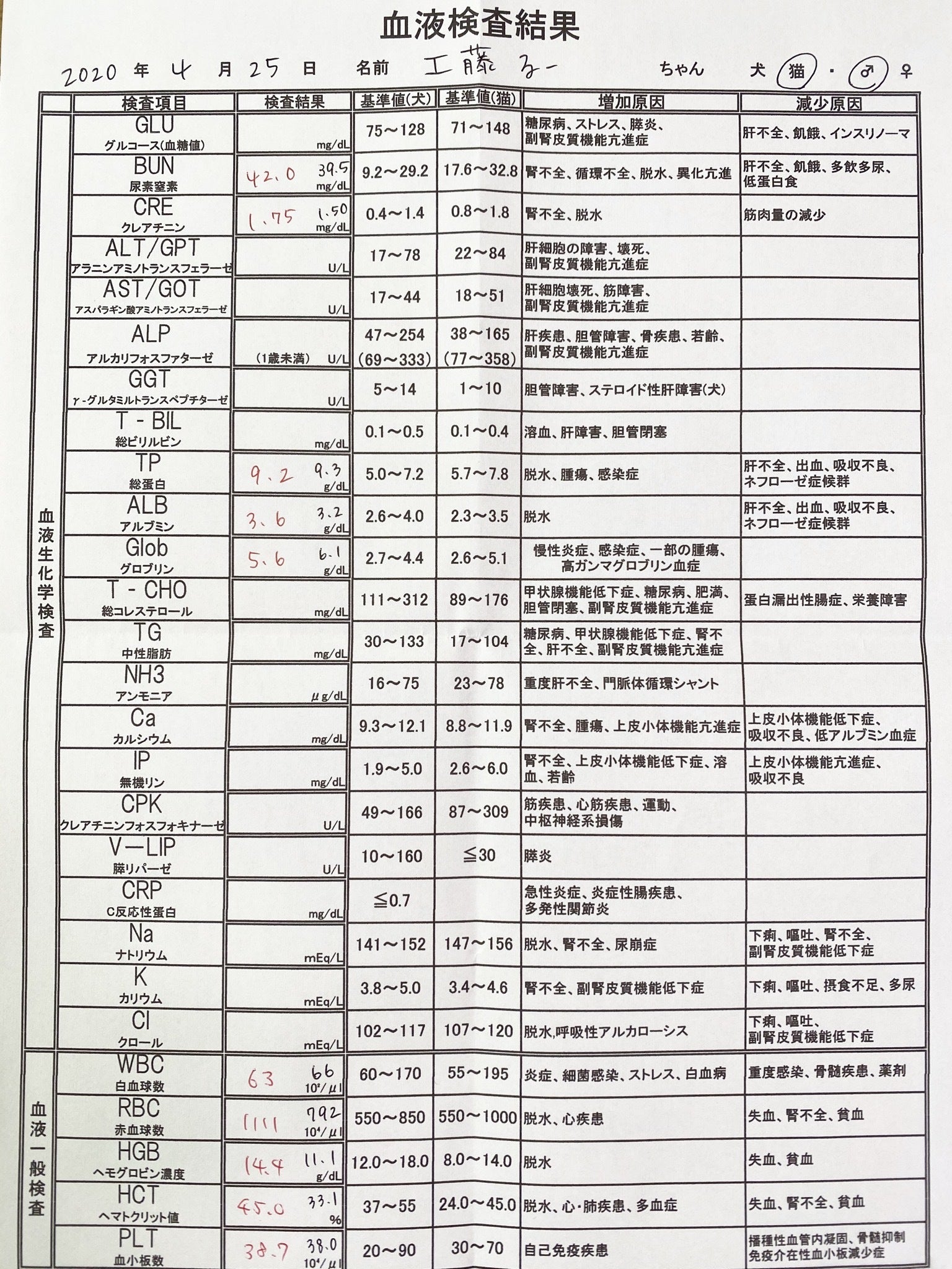 エコーを行いましたが、腎臓の状態は以前とあまり変わらず。