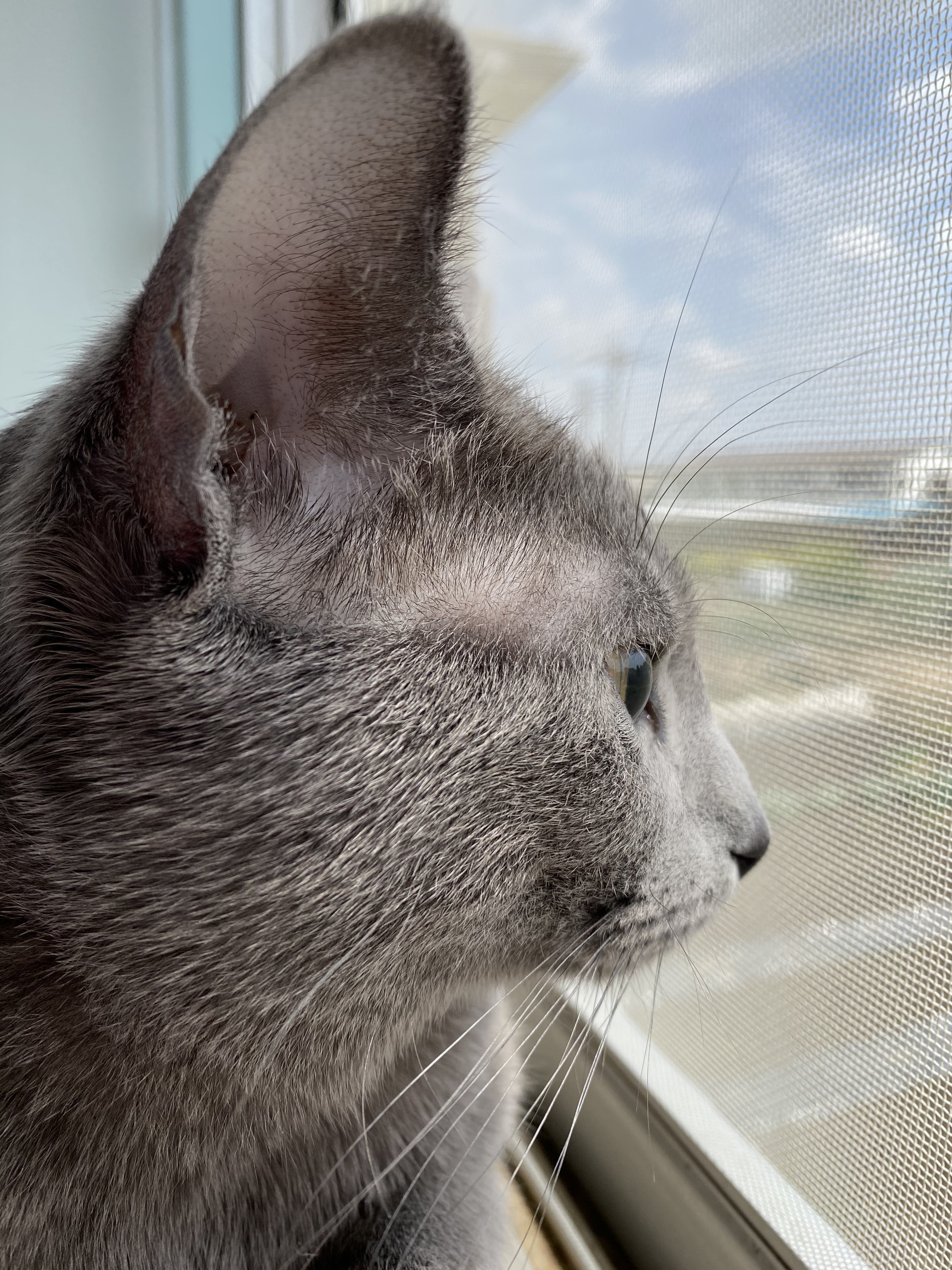 かなり心配です。飼い主の気は知らず、本人は悠々としています。