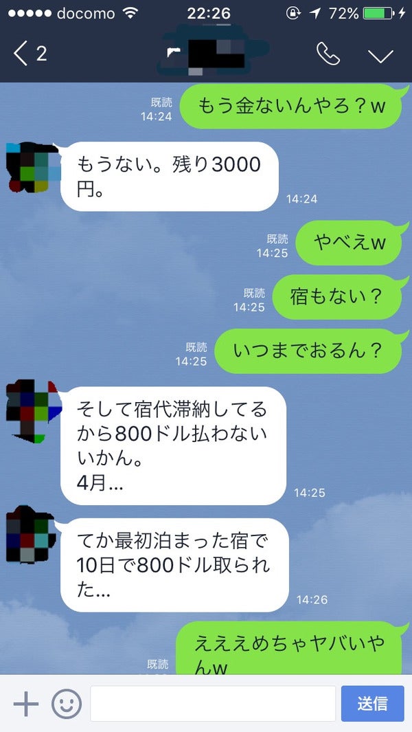 慣れない海外生活で予想以上に出費がかさんで持ち金を使い果たしてしまい空港に寝泊まりを余儀なくされている親友の現状が明らかになりました。