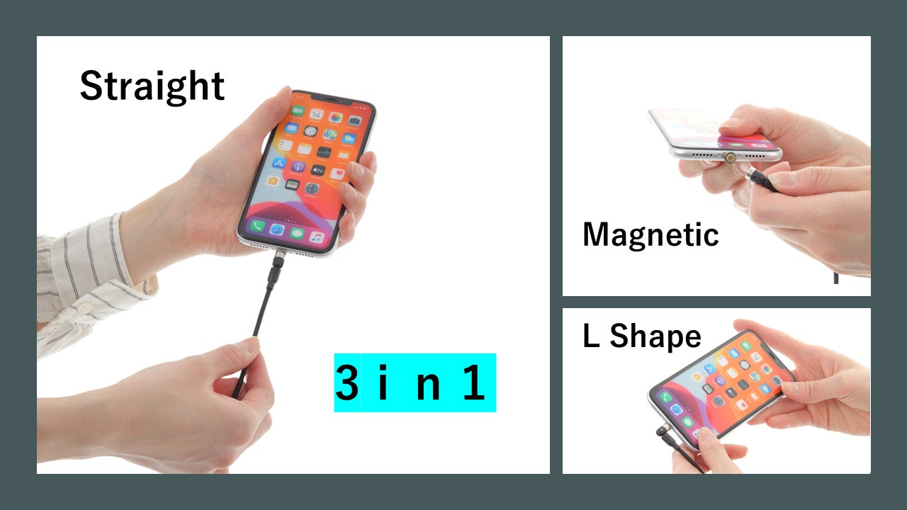 これまでもL字型の充電ケーブルはありましたが、ストレート型とL字型両方を兼ね備えているものはありませんでした。