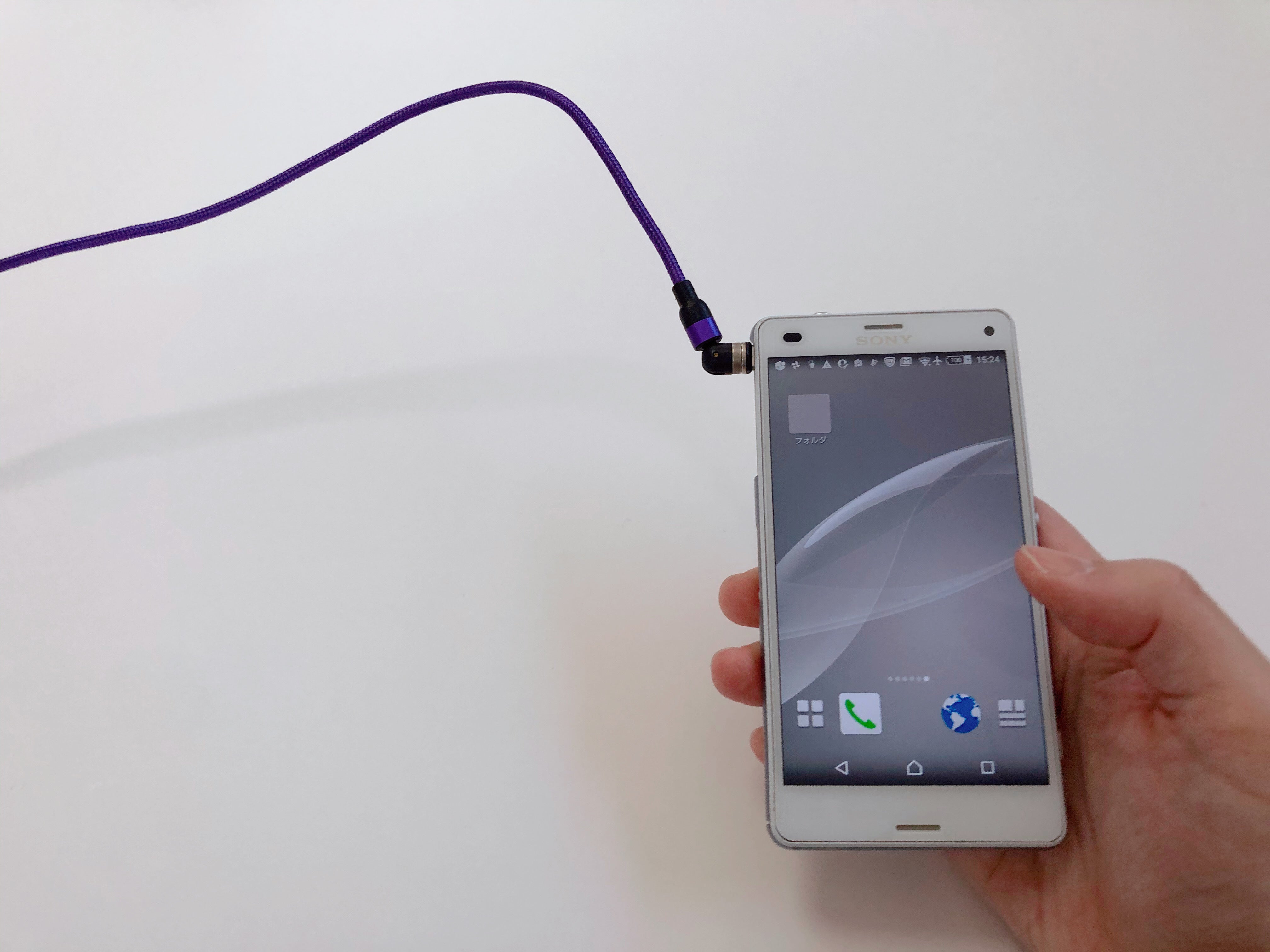 狭い隙間に落としたスマホをケーブルを使って拾うこともできます。