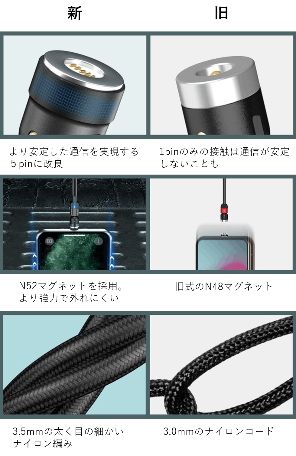 更により強力で外れにくい磁石を採用したことやケーブルを少し太くすることで耐久性もアップしました。
