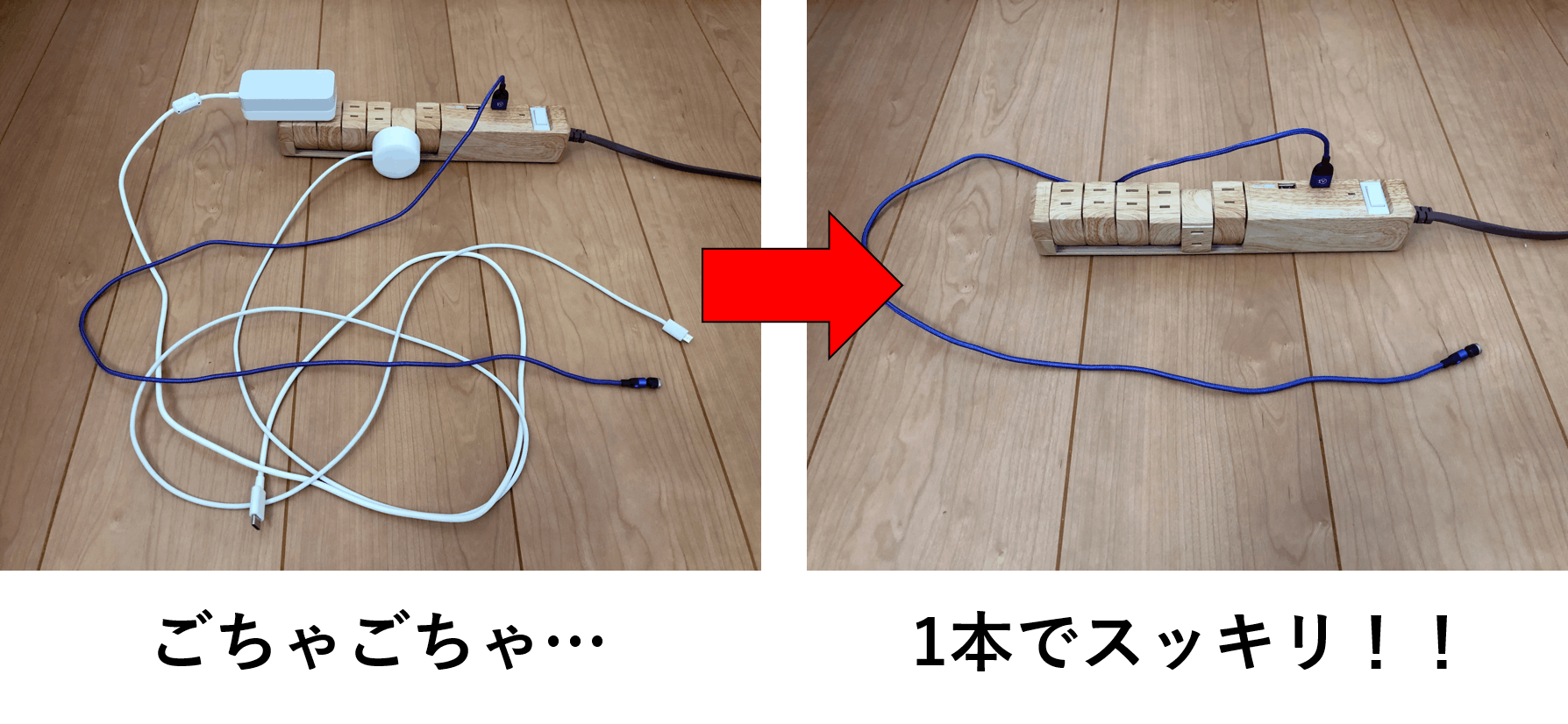 そのため、いくつものケーブルが必要になりコンセントにコードだらけでごちゃごちゃ…見た目にも良いものではないですよね?