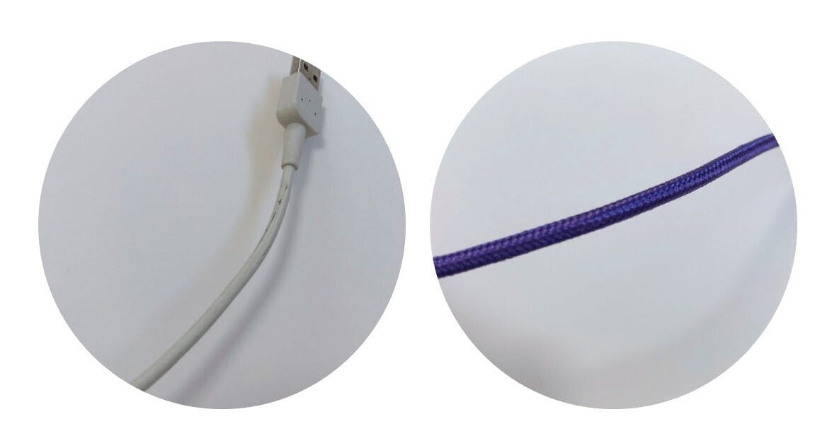 一般的な白いケーブルは汚れやすく、すぐ黒くなって見た目にもNG。