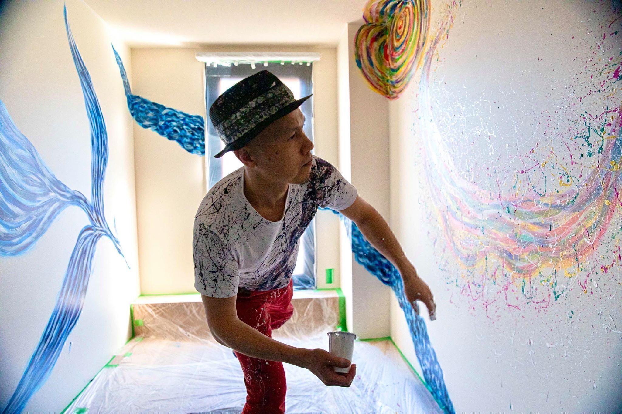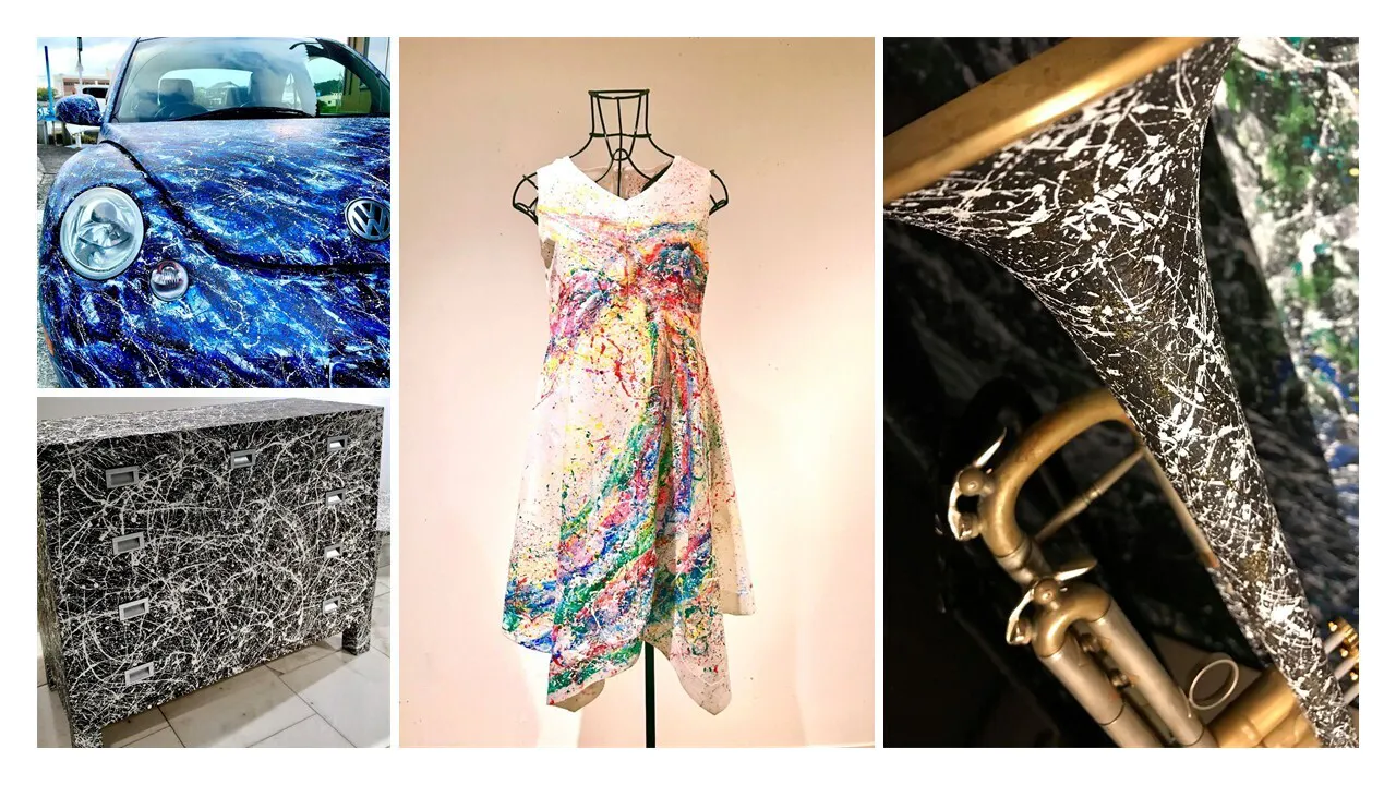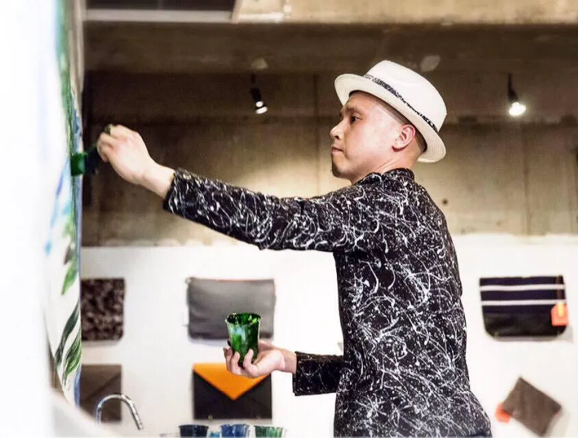 苦しい時代を経て、自分のTシャツに染料がこぼれたことをきっかけに、シブキアートに目覚めました。