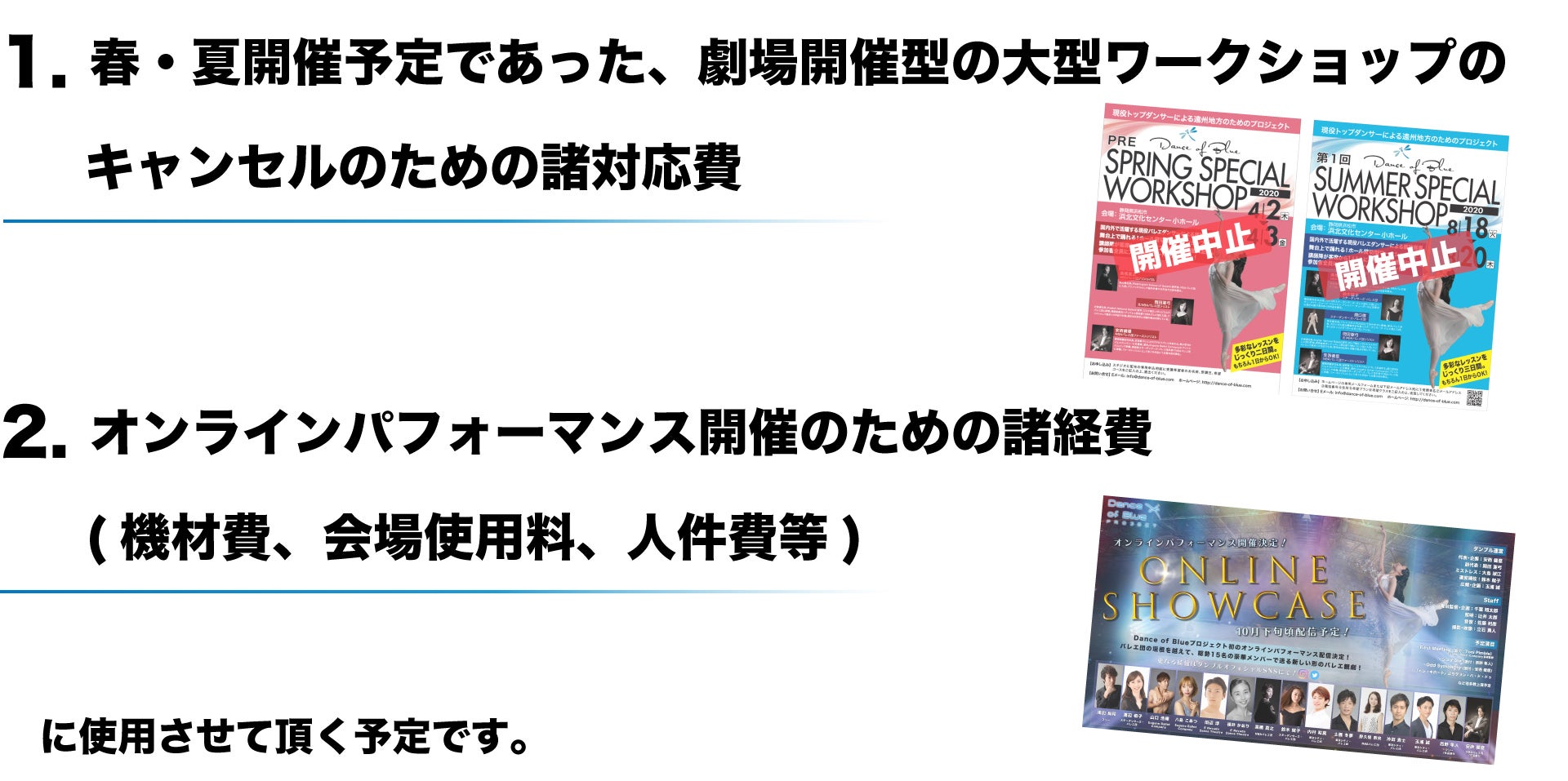 Dance of Blueとしても初のトライアル公演となるため、また春・夏に開催予定であった劇場にて開催予定であった大型ワークショップの開催が中止になってしまったため、資金面でかなりチャレンジな企画となっております。