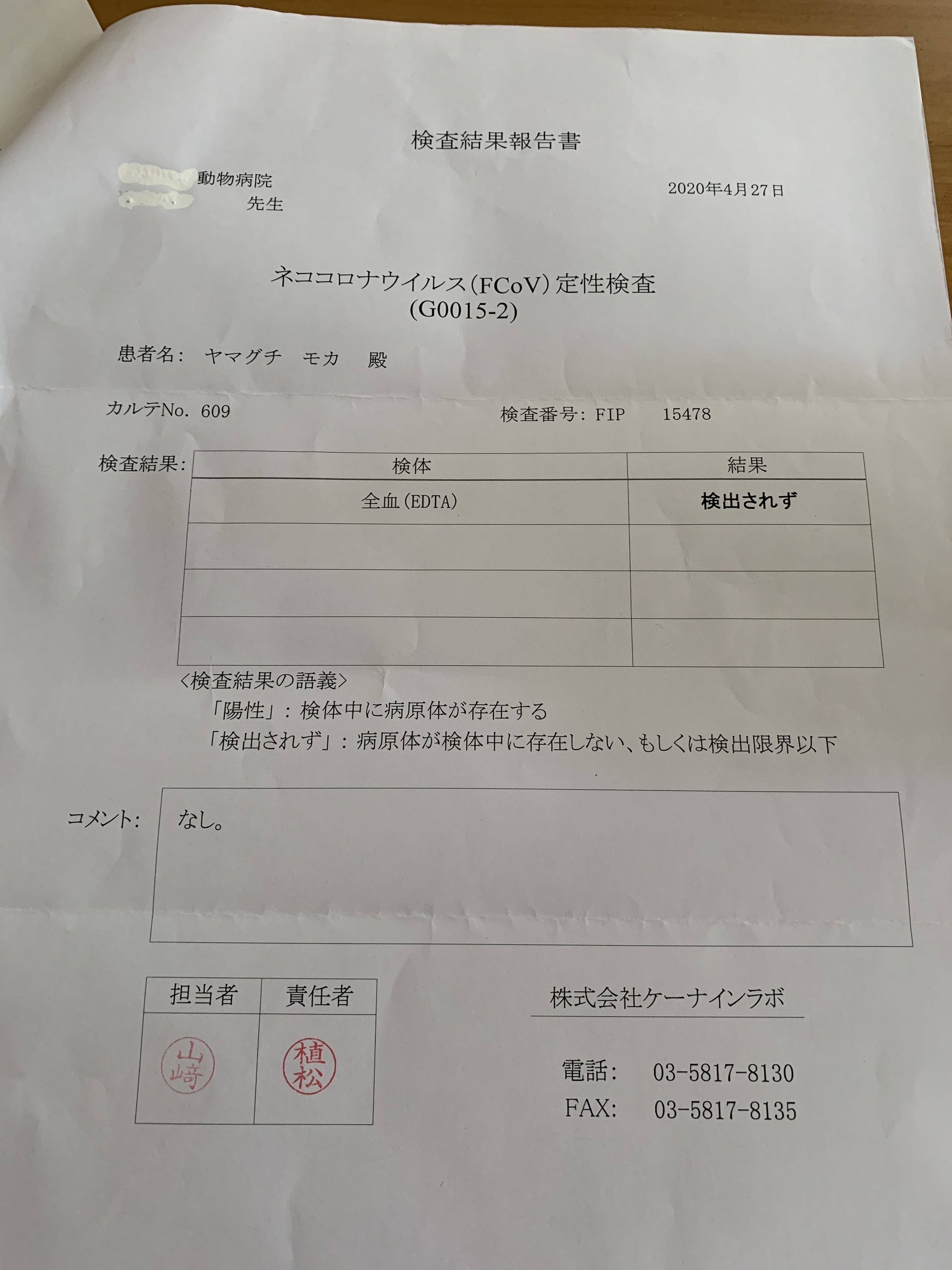 再発の兆候かなと不安になったりもしましたが腹部のエコーも全て問題なく、血液検査の結果ウイルスも検出されず。
