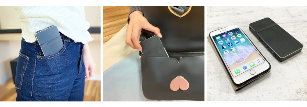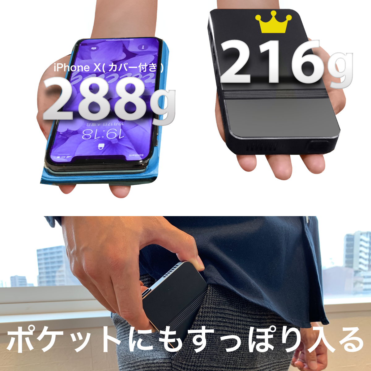 スマホを二台持ちする感覚で持ち運べます。もちろん、ポケットにもすっぽり入ります。