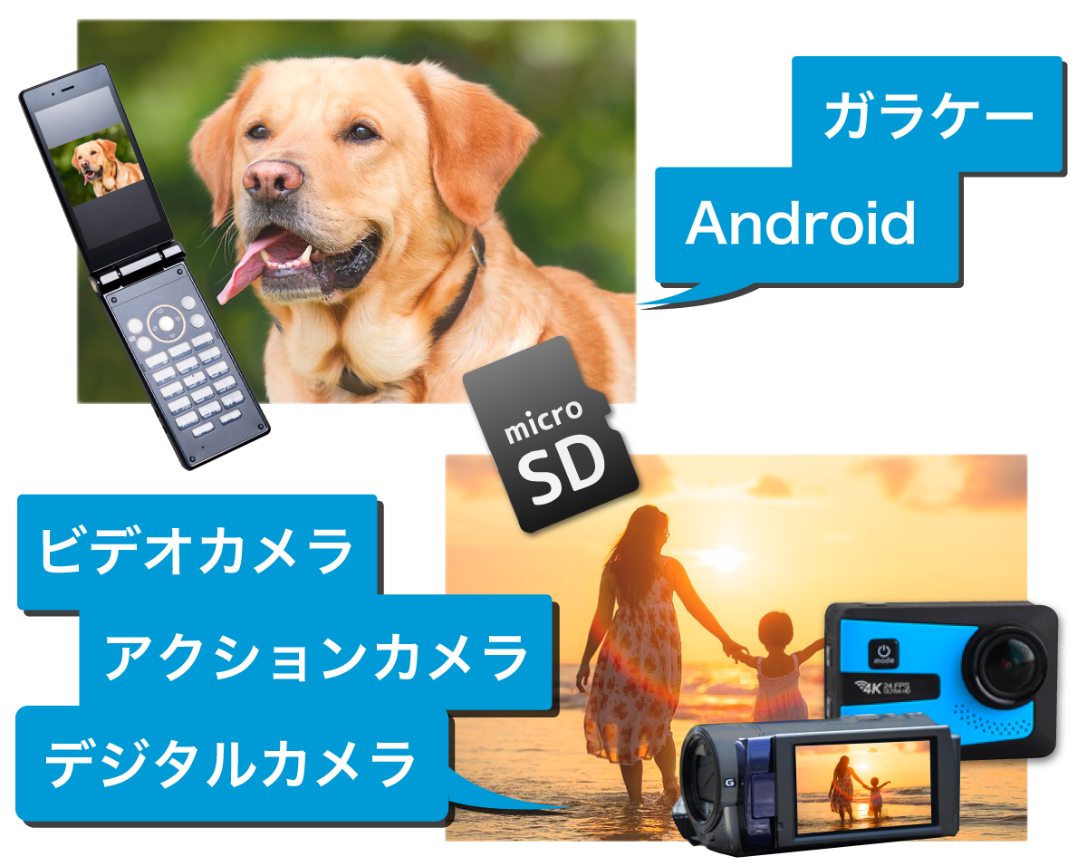 microSDが挿さるので、デジタルカメラやガラケーの画像が大画面で見られます。