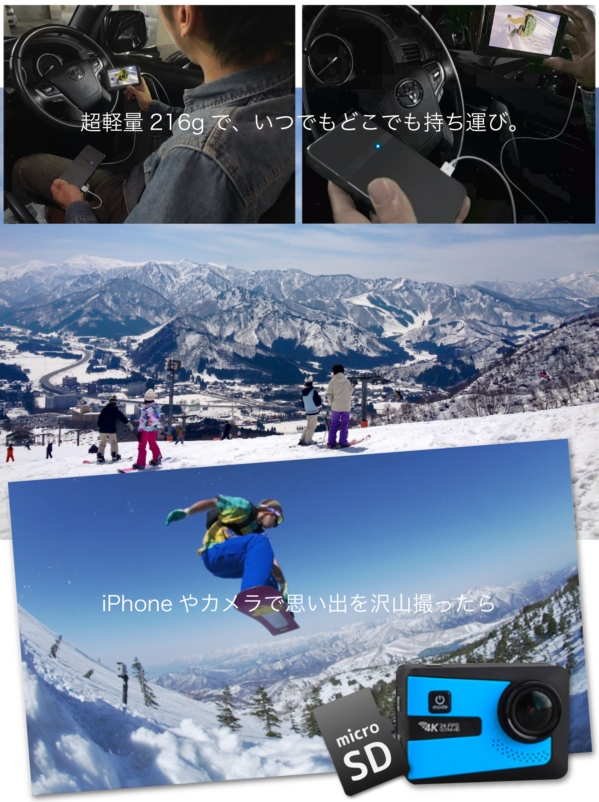 例えば、アクションカメラでスノボーの滑走シーンを録画して、microSDを読み込めば、